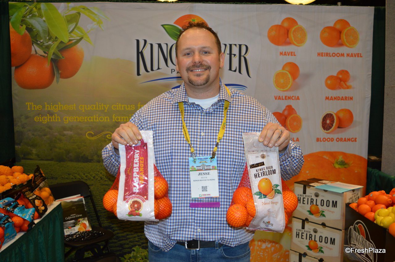 Jesse Silva with Kings River Packing shows Rapsberry oranges as well as Hierloom oranges. The Raspberry orange is an alternative name for blood oranges.
