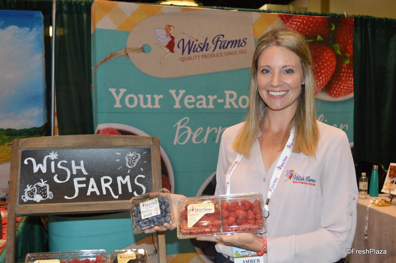 Amber Maloney with Wish Farms proudly shows blueberries and raspberries.