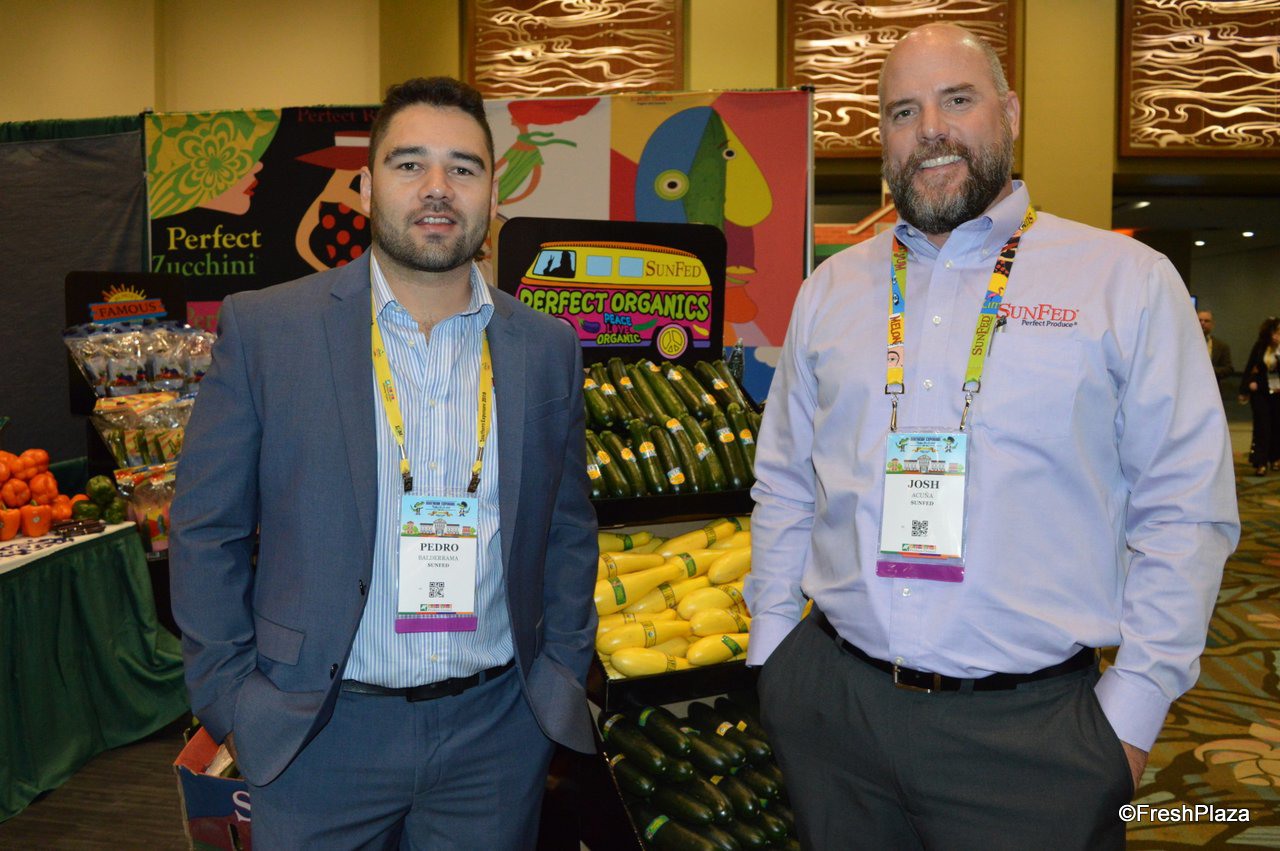 Pedro Balderrama and Josh Acuna with SunFed are standing in front of an organic display. The company is building its organic program.
