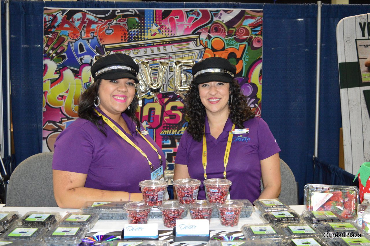 The team of Star Produce proudly shows a variety of products, including strawberries, blueberries, tomatoes, lettuce and cherries.