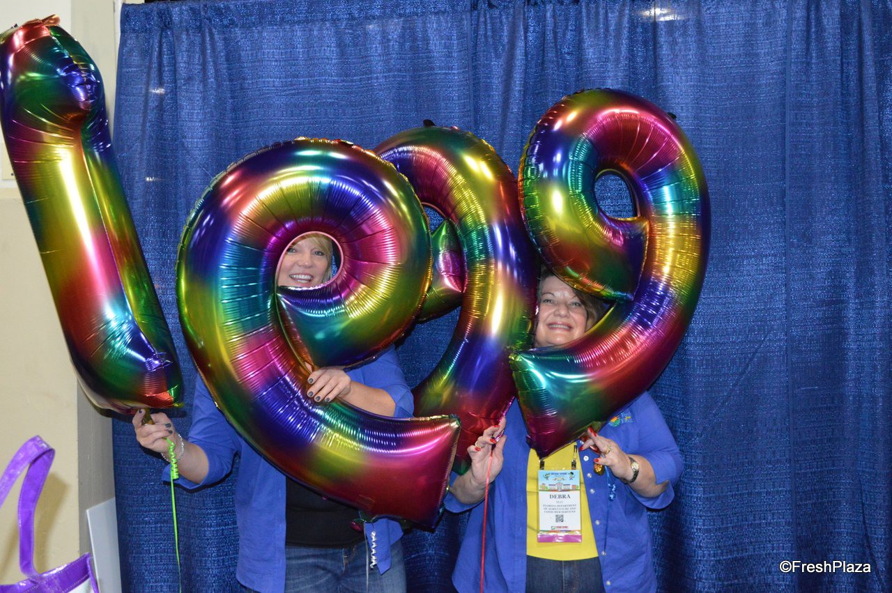 Winners of the Best ‘Produce Like It’s 1999’ booth are Alma Lorenzo and Leslie Simmons with Dave’s Specialty Imports.