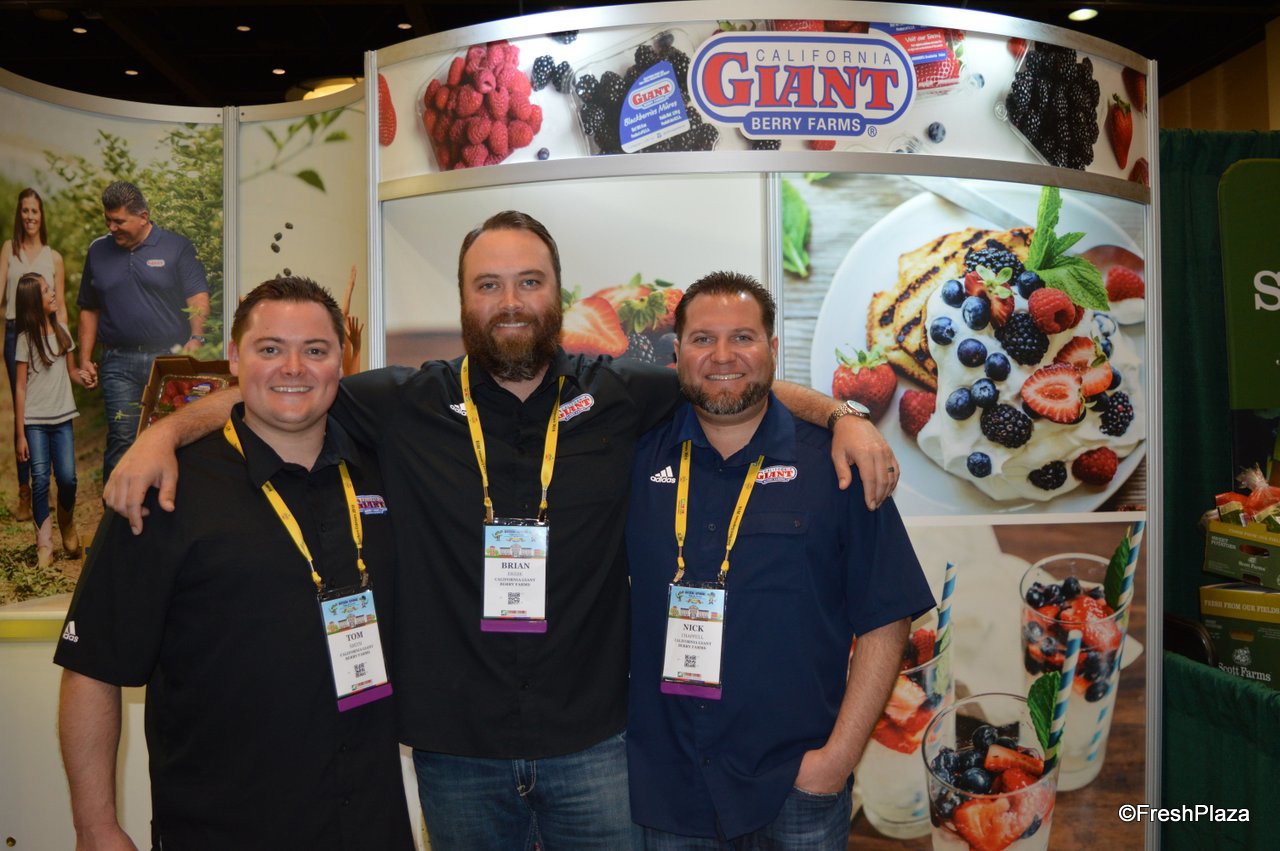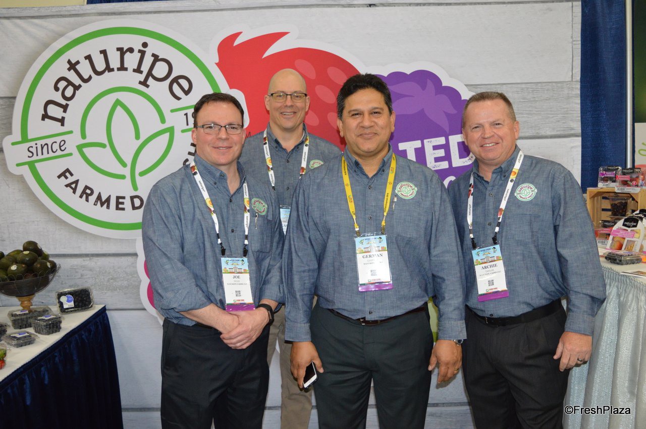 The team of Naturipe Farms in its rebranded booth. From left to right: Joe Dugo, Kasey Kelley, German Llanten and Archie Taylor.
