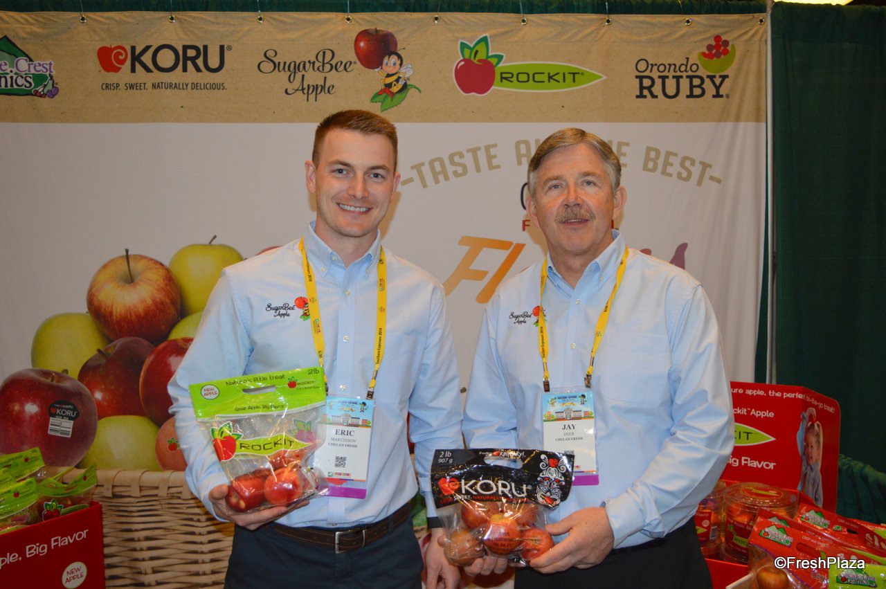 Eric Martinson and Jay Dyer with Chelan Fresh show Rockit apples and Koru.