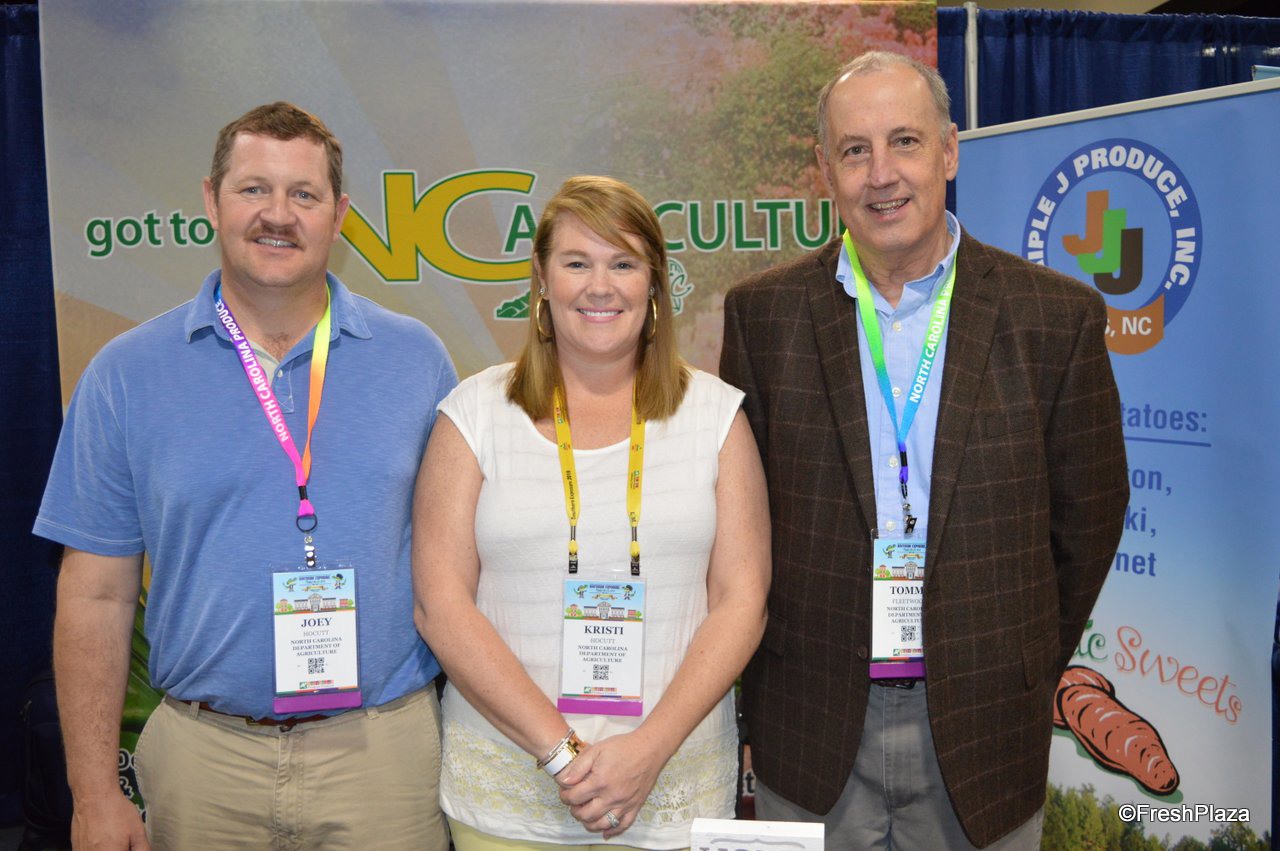Triple J Produce represented together with the North Carolina Department of Agriculture. From left to right: Joey and Kristi Hocutt with Triple J Produce and Tommy Fleetwood with NC Department of Ag.