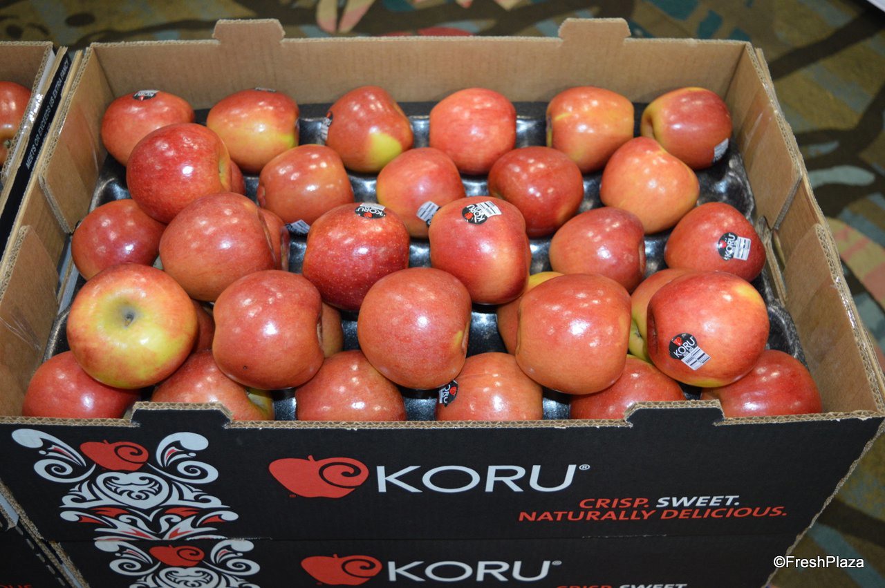 On display at the Starr Ranch booth are Koru apples. The first shipment of new crop Koru apples from New Zealand is expected to arrive May 1st.