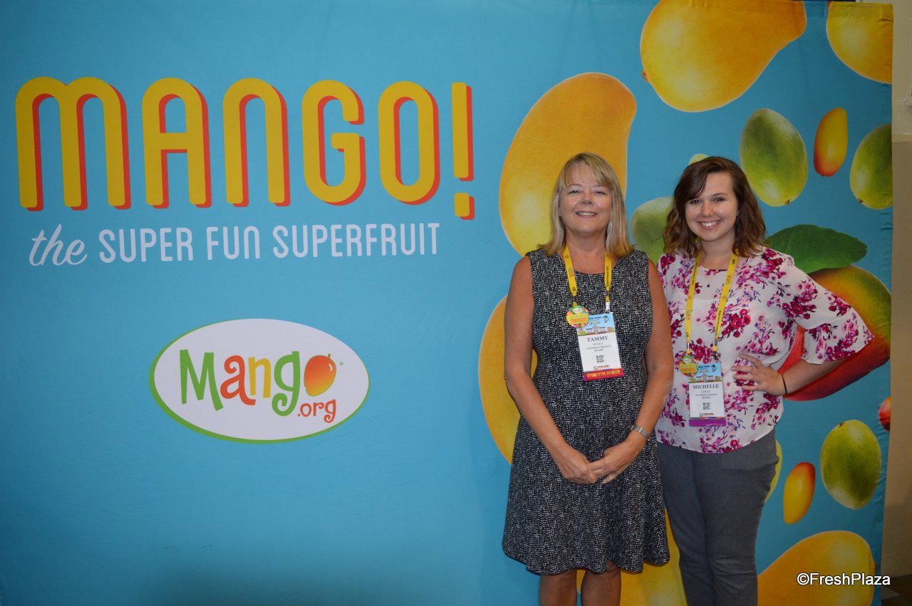 Tammy Wiard and Michelle Larkin in the colorful booth of the National Mango Board.