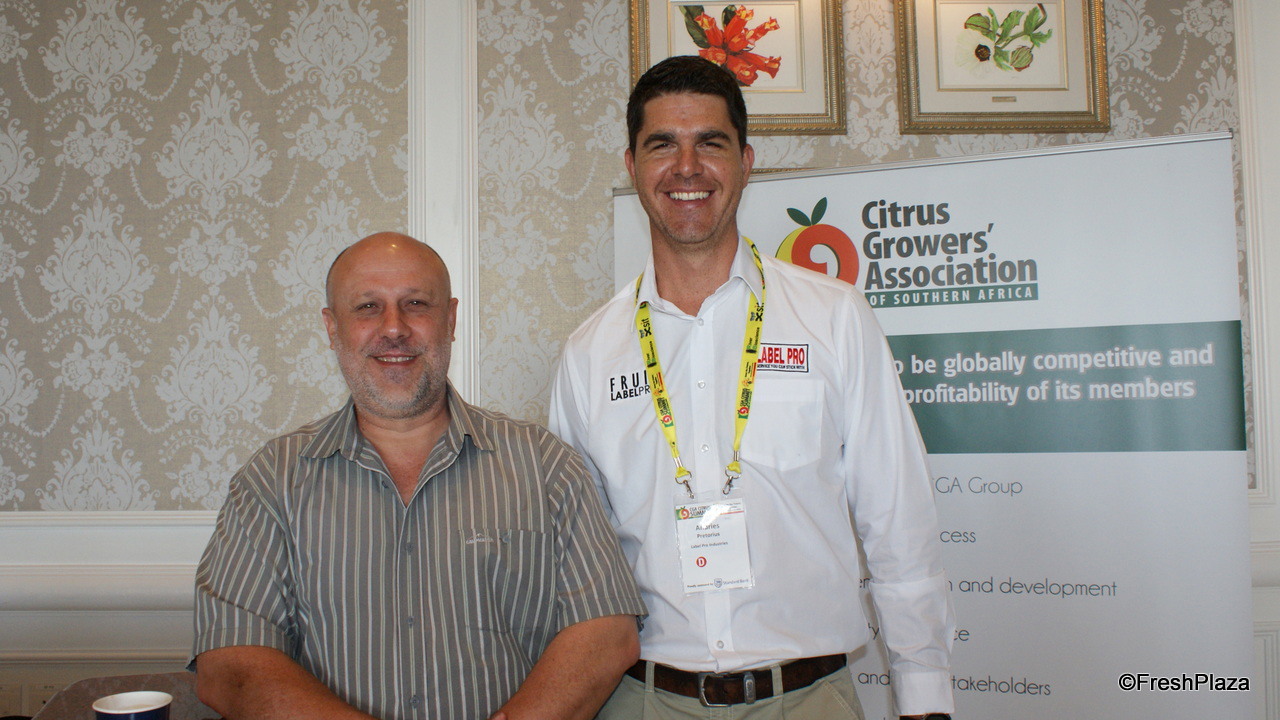 Christo Naudé of Malelane Citrus and Andries Pretorius of Label Pro, fruit label applicators.