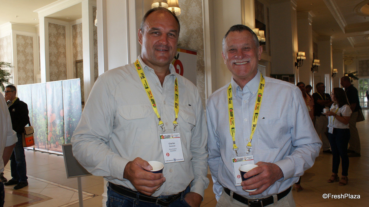 Charles Rossouw of Roslé Boerdery with Gerald Denni, chair of the Sunkist board of directors.