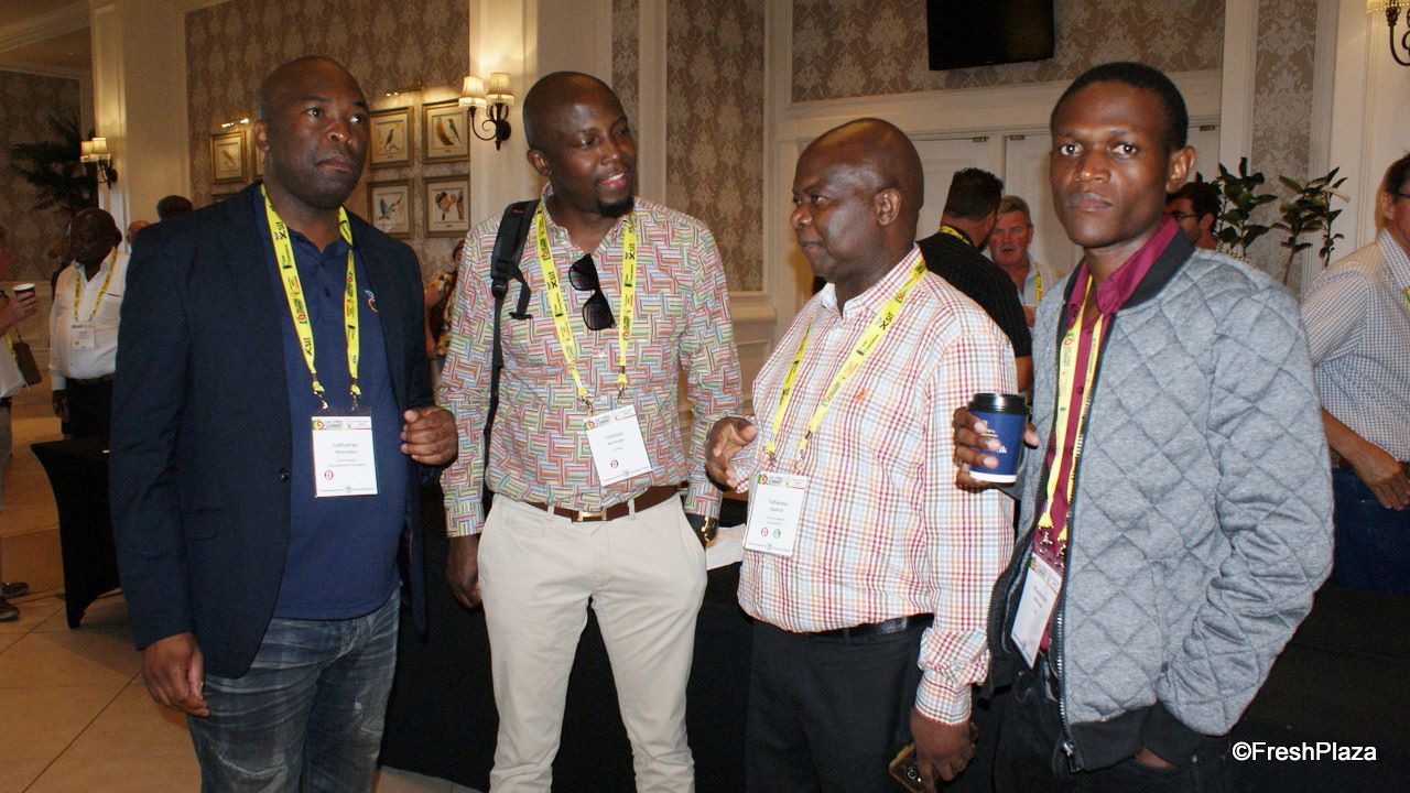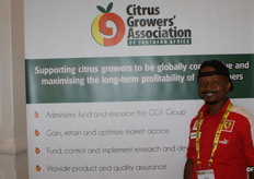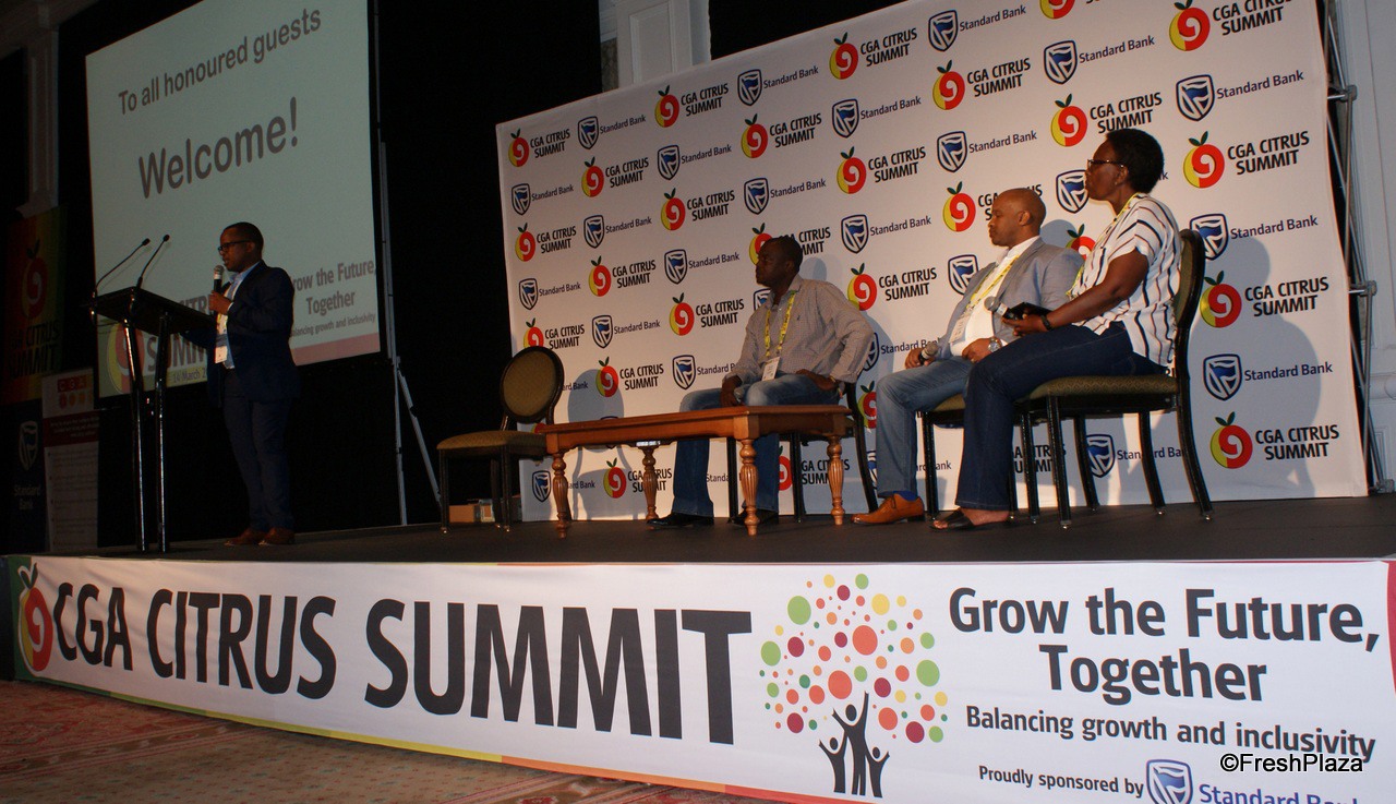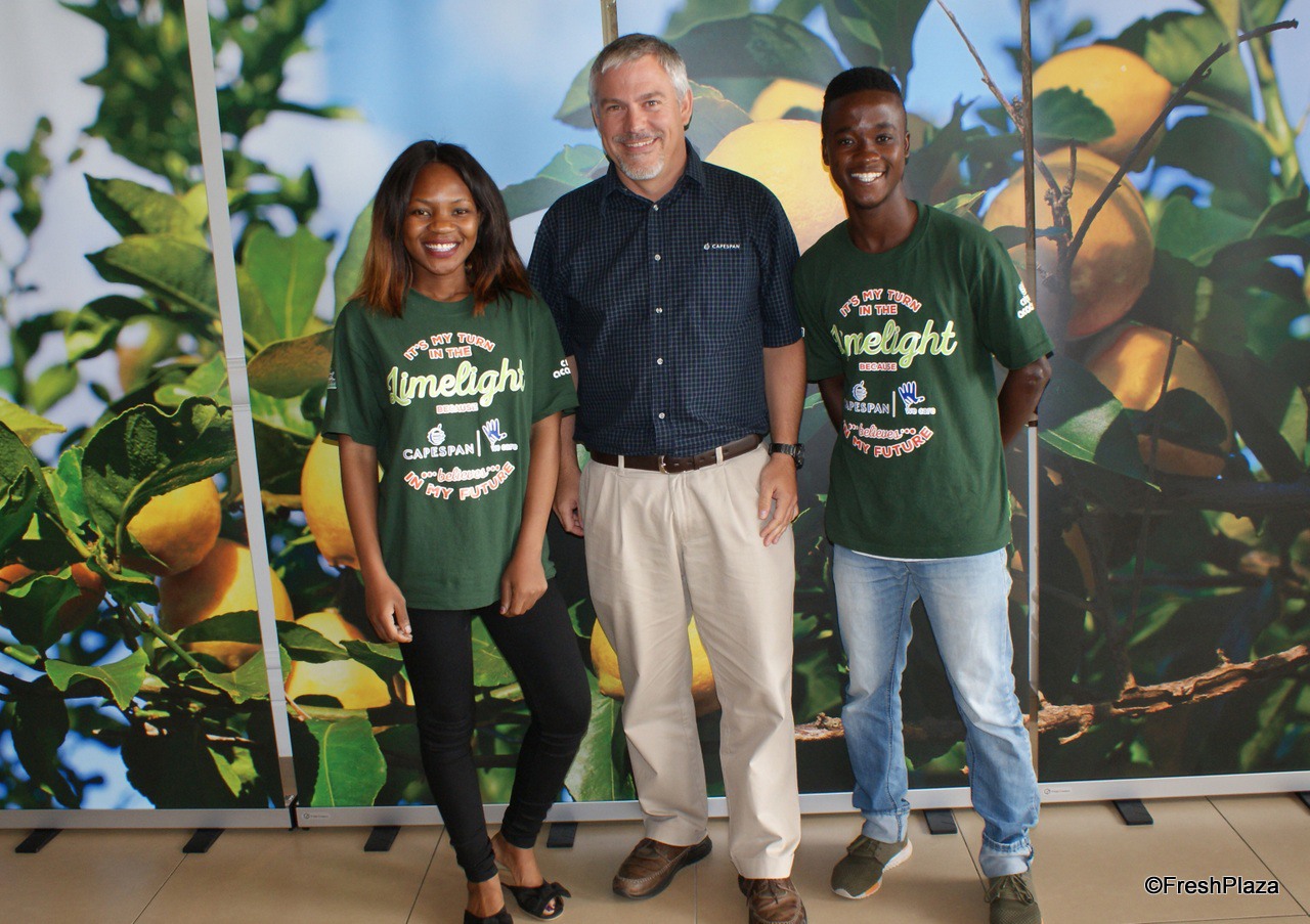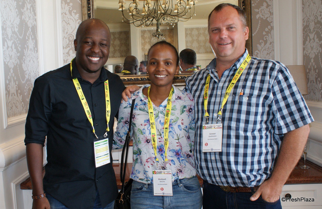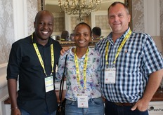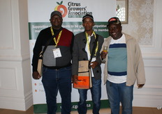 Khoncelani Shivambu and Neil Ndlovu of the Citrus Academy in Nelspruit with Charl du Bois of Capespan, that sponsored their attendance of the summit.