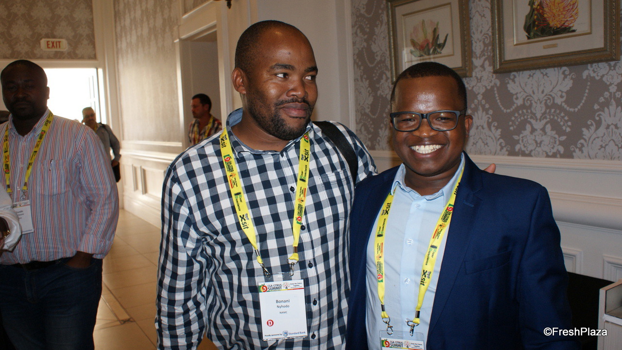Bonani Nyhoda of the National Agricultural Marketing Council with Wandile Sihlobo, Agbiz agricultural economist.