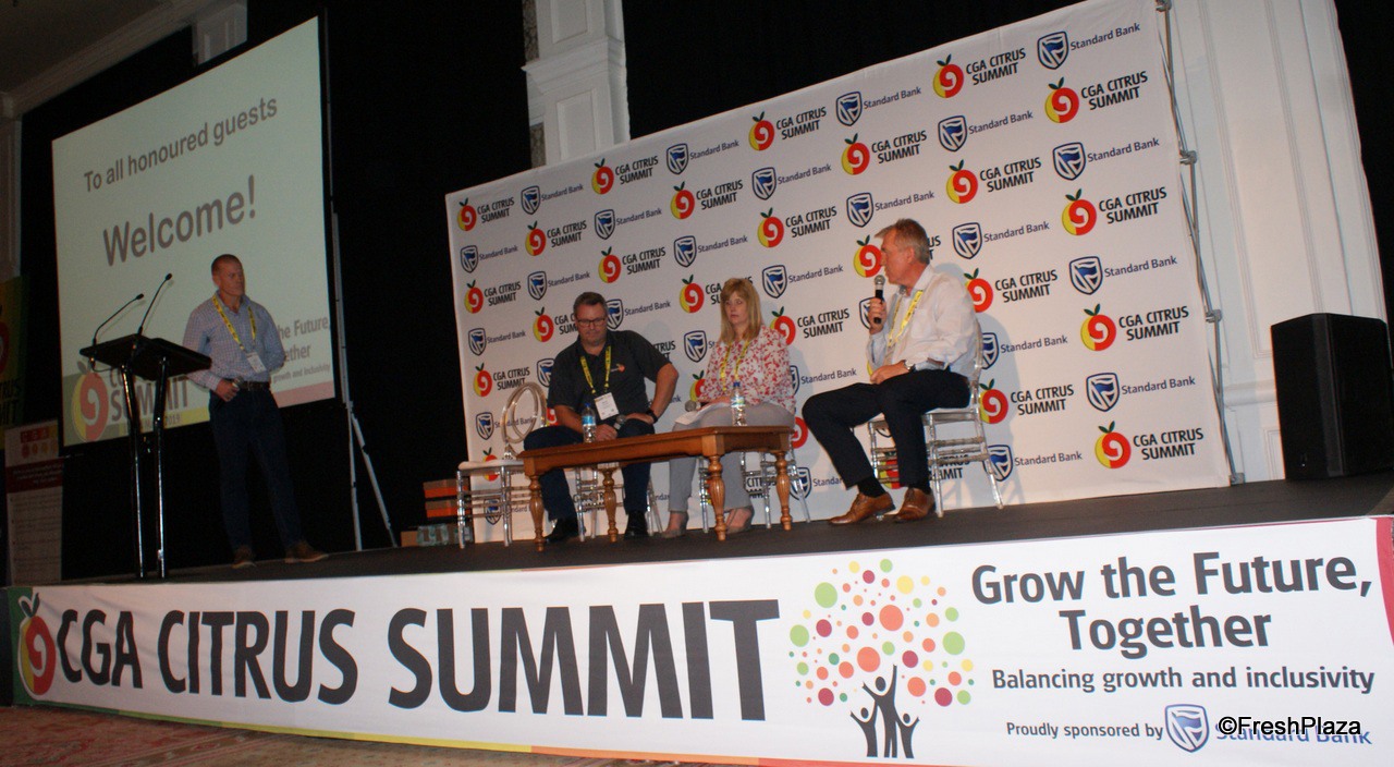 Jacques Ehlers of Hennie Ehlers Boerdery in the Sundays River Valley, Cornelius Krogscheepers of the Citrus Academy and Edri Vorster, Zest Fruit.