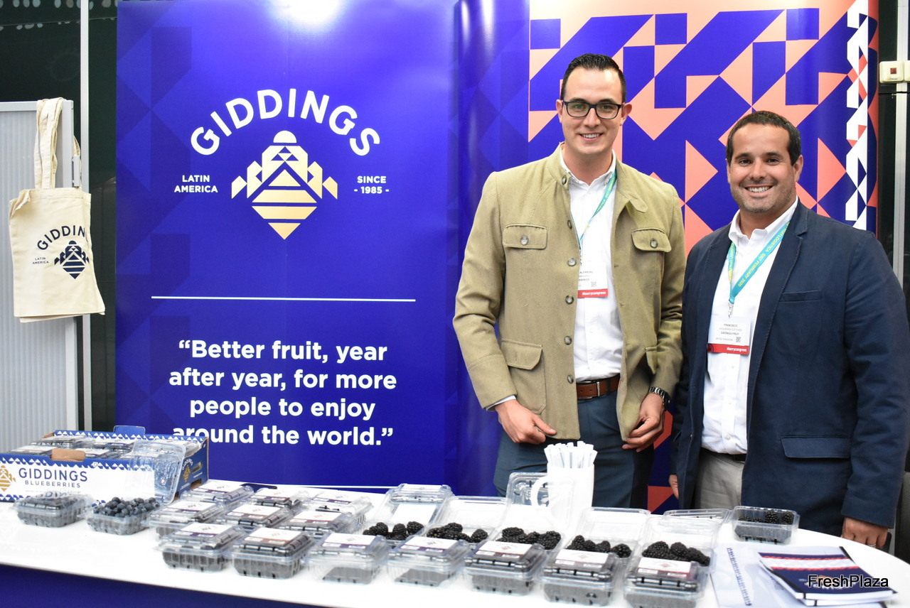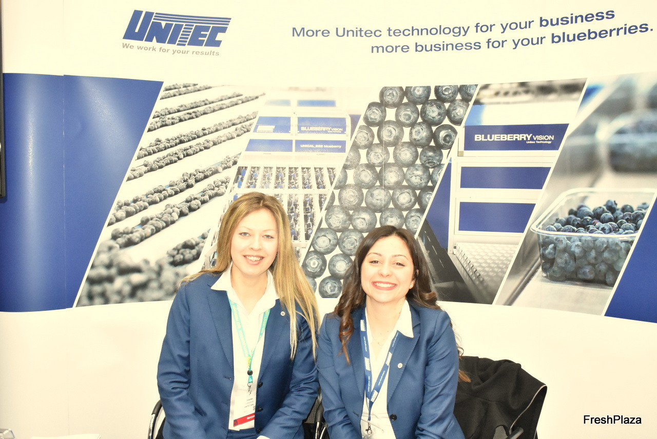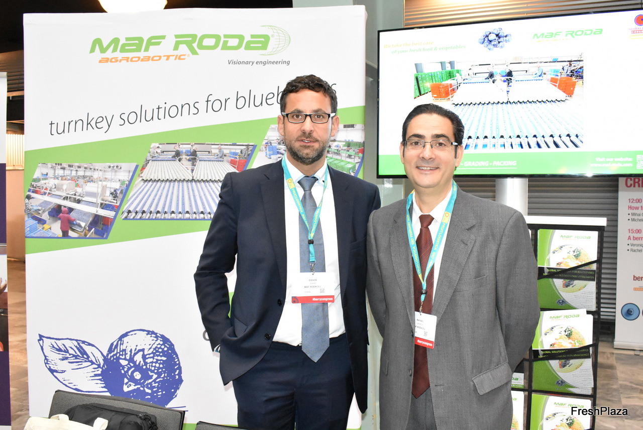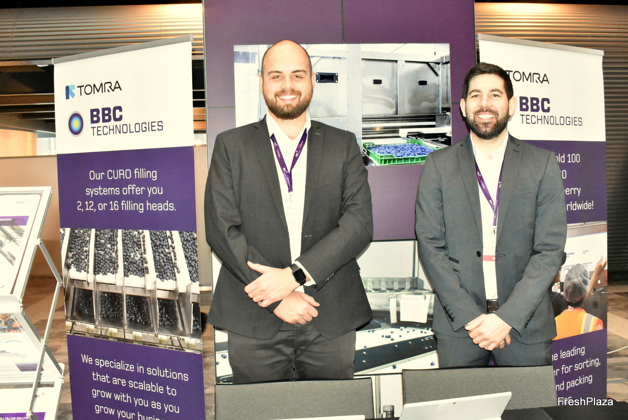 Joshua Miers-Jones and Nick Hall promoting the BBC Technologies' blueberry sorting machines.