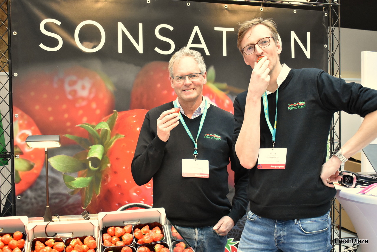 Jan Robben and Steven Oosterloo enjoying a Sonsation strawberry.