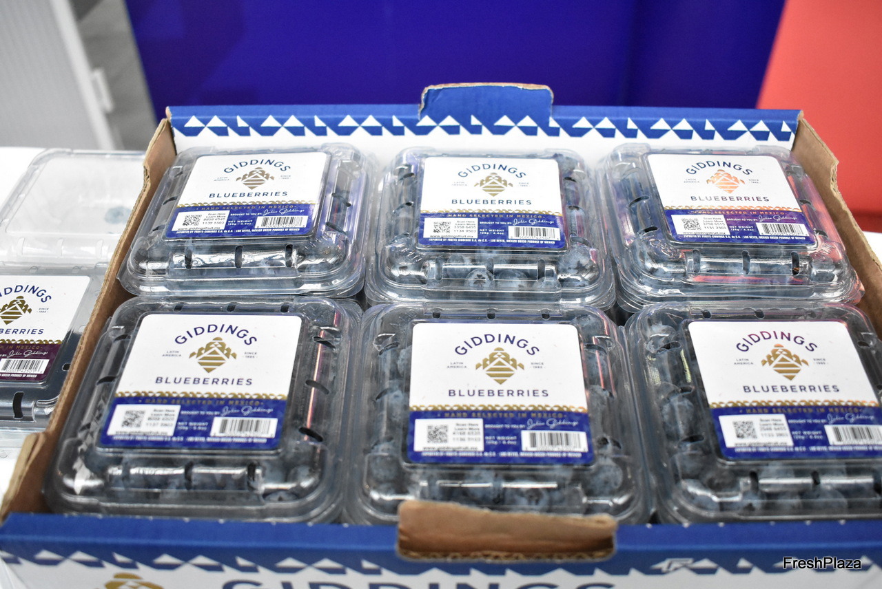 Giddings Blueberries showing the new gold bee logo designed for the Asian market.