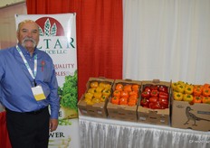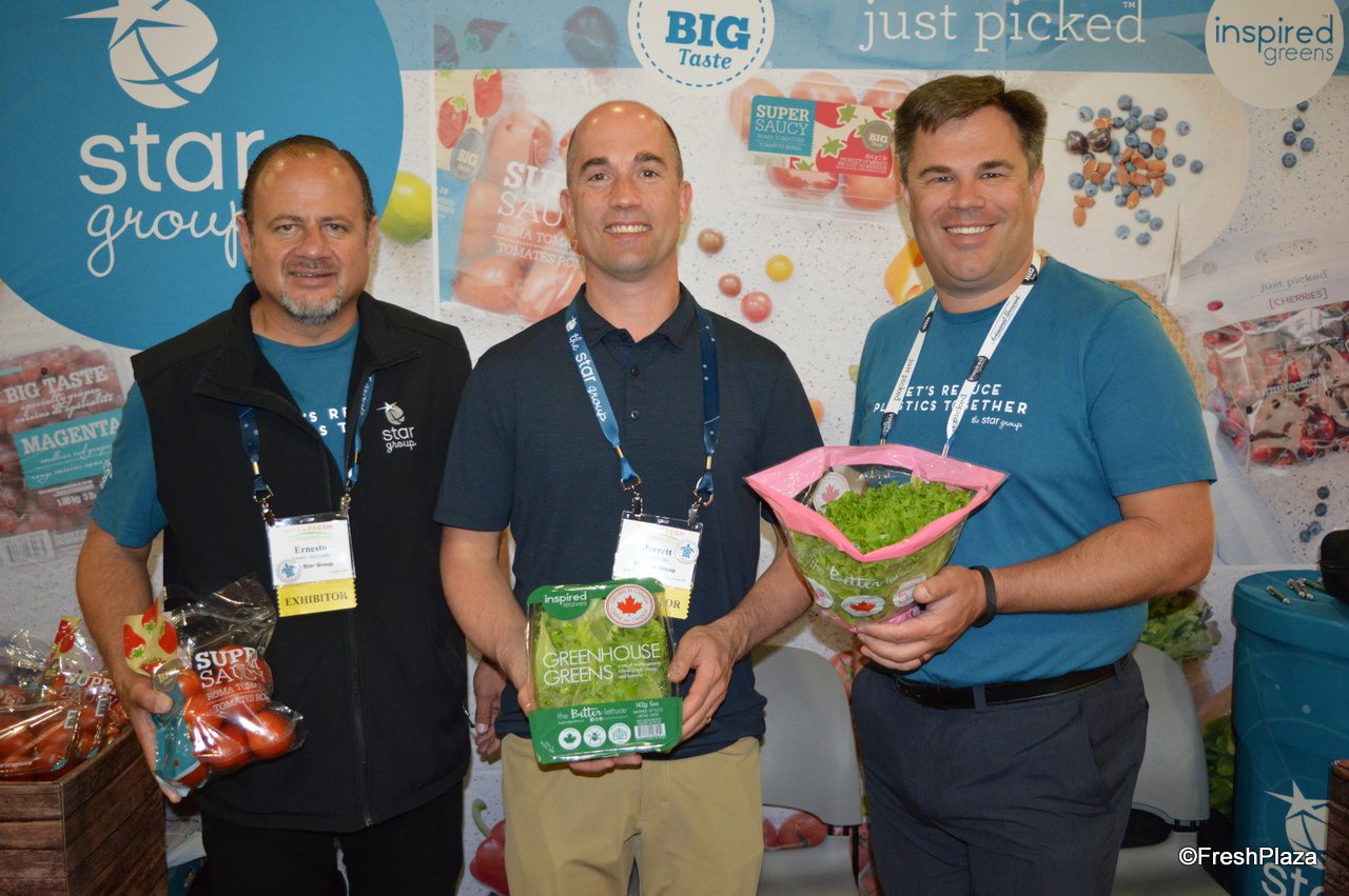 Ernesto Maldonado, Jarrett Little and Matt Bates with The Star Group show Roma tomatoes, a Greenhouse Greens lettuce blend and Inspired Greens lettuce. The lettuce is grown in the company’s greenhouses in Coaldale, Alberta.