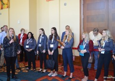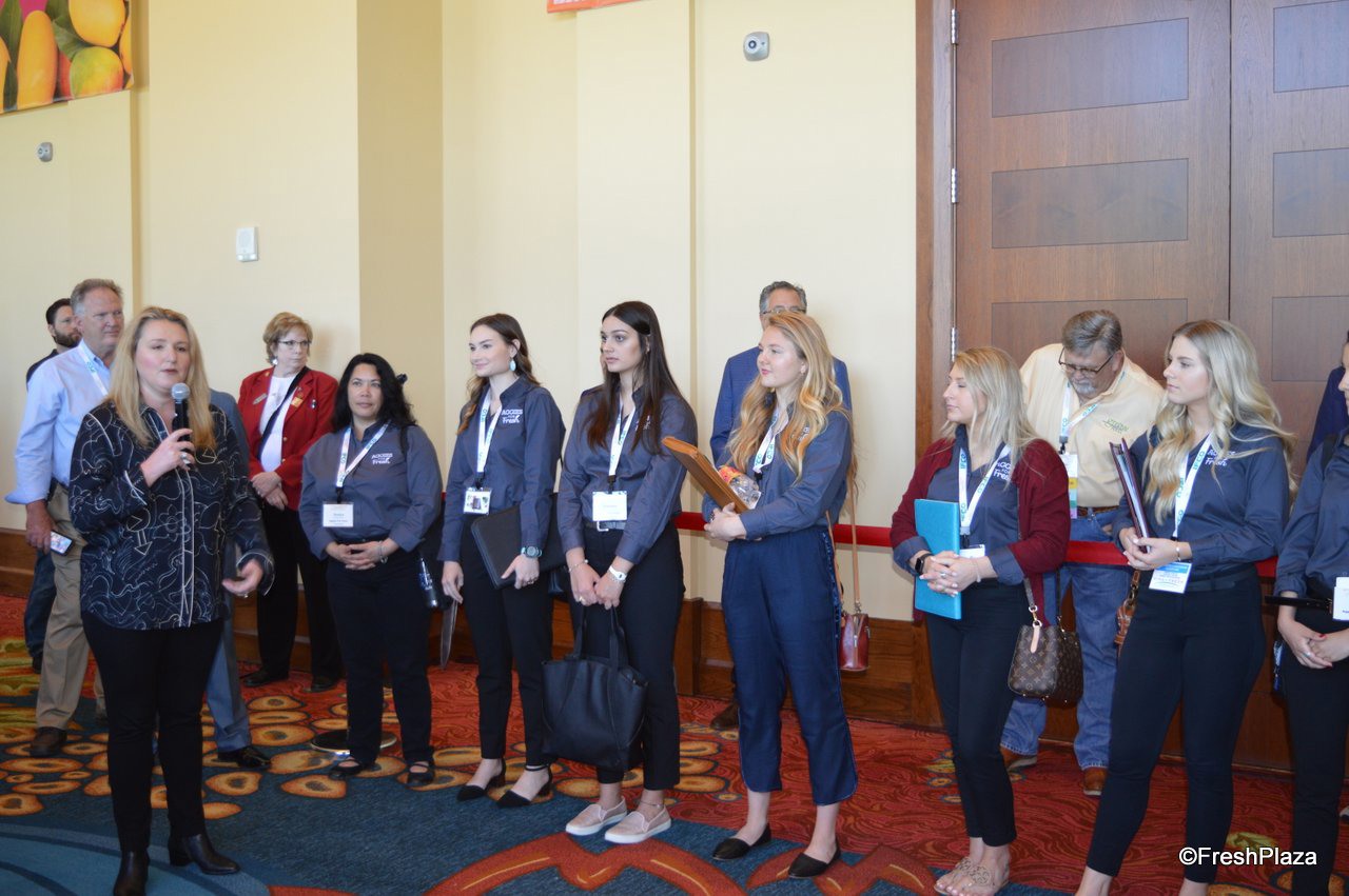 Dan’l Mackey Almy with DMA Solutions introduces the students from the Aggies for Fresh program to trade show attendees. These students from Texas A&M University pursue a career in fresh produce.