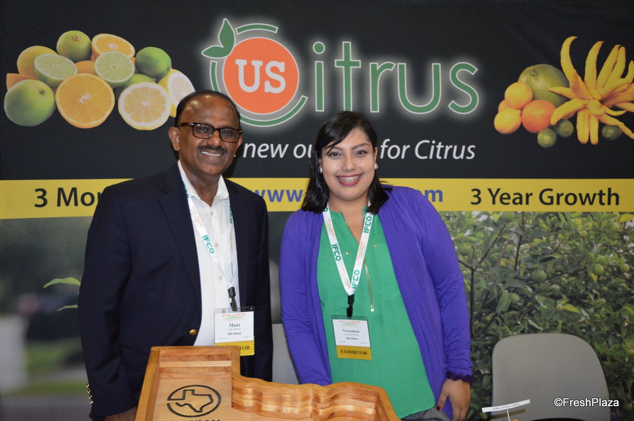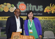Mani Skaria, PhD and Veronica Reyna with US Citrus. The company uses micro-budding to grow citrus trees. The trees grow in less than half the time compared to the traditional way. US Citrus has its own nursery, fields and packing house.