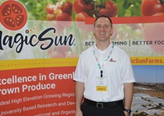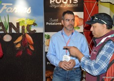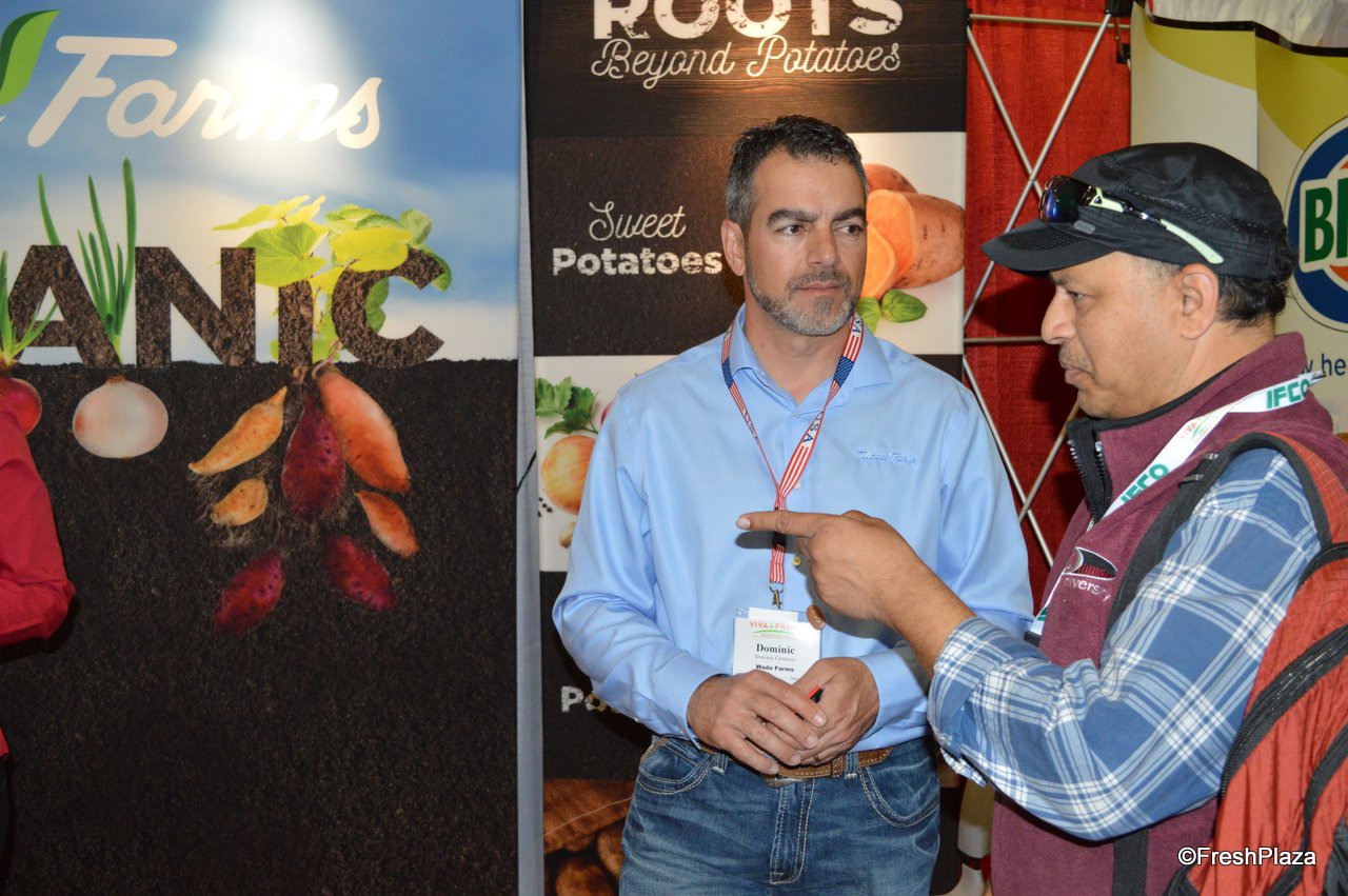 Dominic Garnazzo with Wada Farms is talking with a show attendee.
