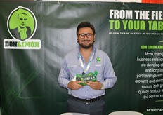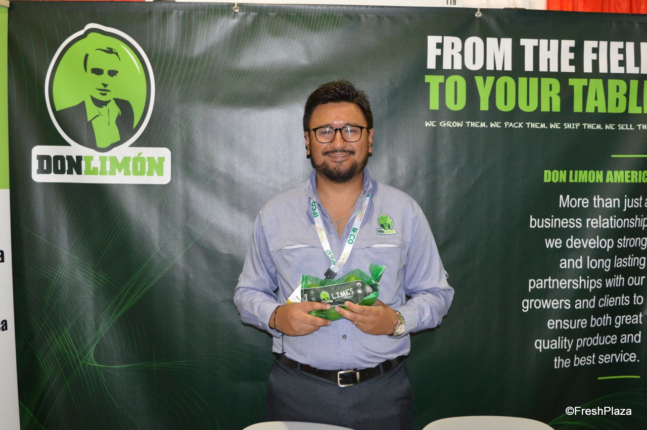 Diego Morales with Don Limon shows a 1 lb. mesh bag with organic limes.