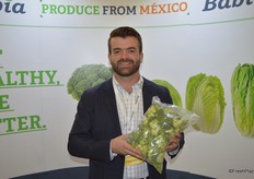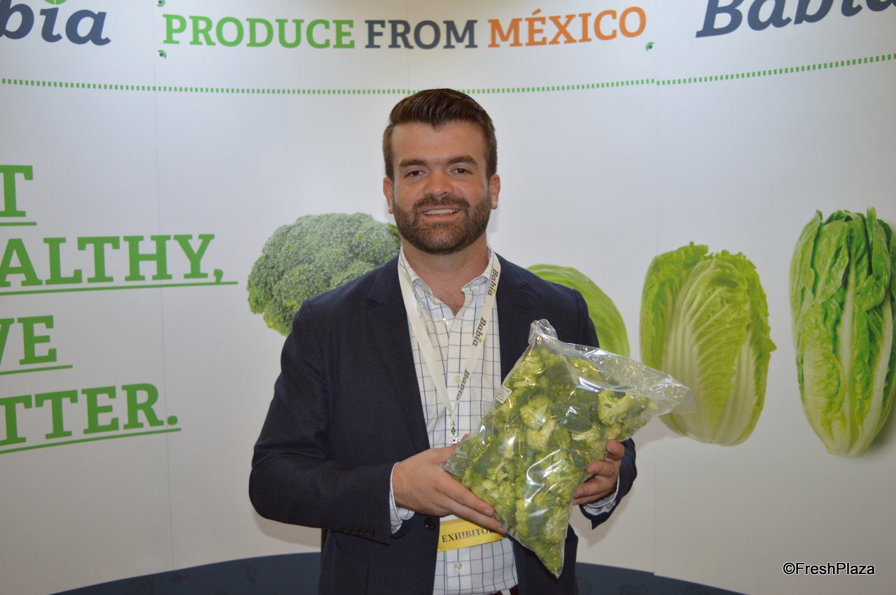 Michel Veyan Reed with Babia shows broccoli florets that are available in organic as well as conventional.