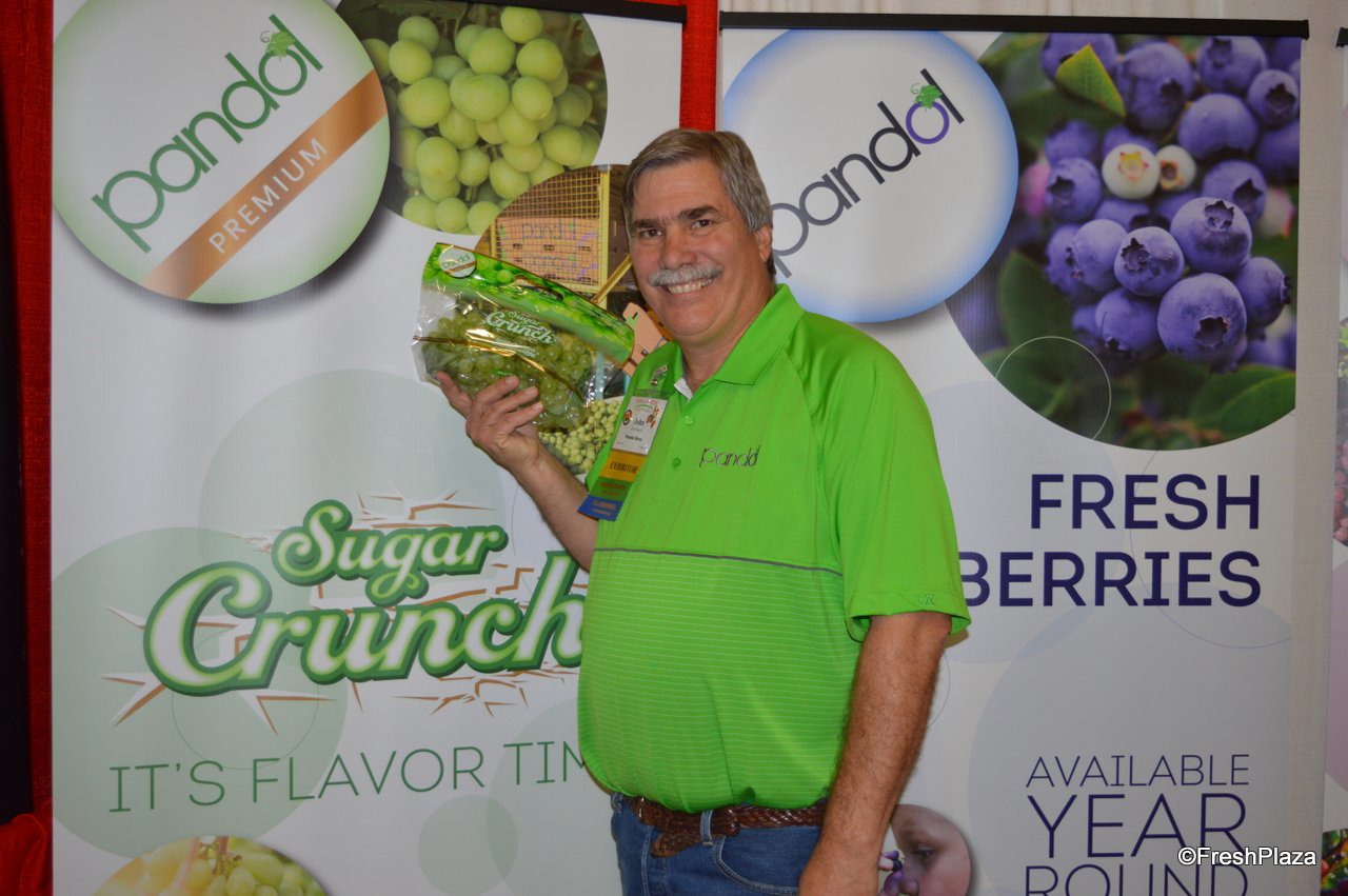 John Pandol with Pandol Brothers shows green Sugar Crunch grapes.