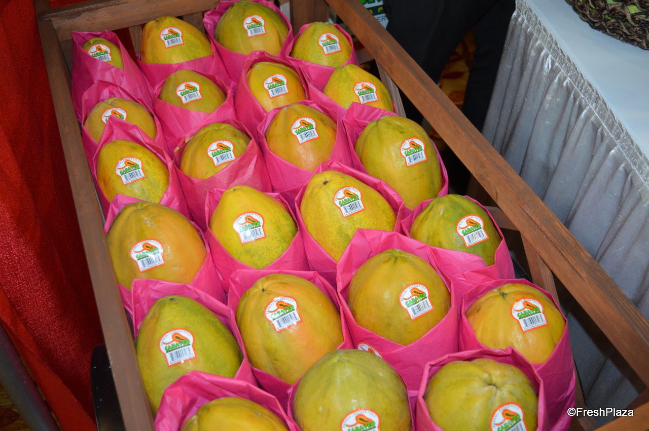 Beautiful display of Maradol papayas at the Caraveo booth.