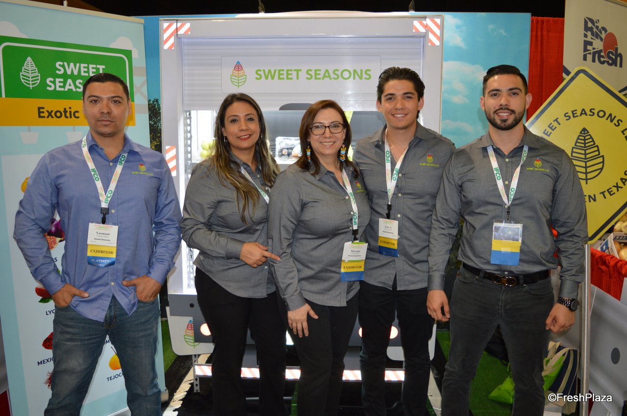 Sweet Seasons has a lot of exotic produce varieties on display. Pictured from left to right are: Yasmani Garcia, Bertha Bañuelos, Marina Bernal, Jose Bernal and Jovanni Bernal. Next week, the company’s lychee program starts, followed by rambutan and dragon fruit.