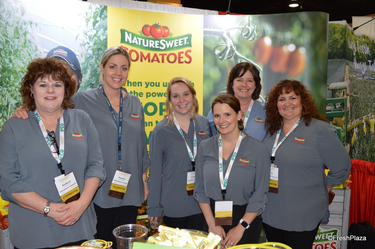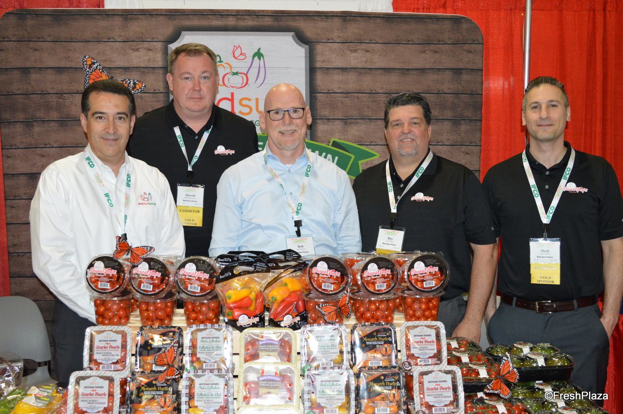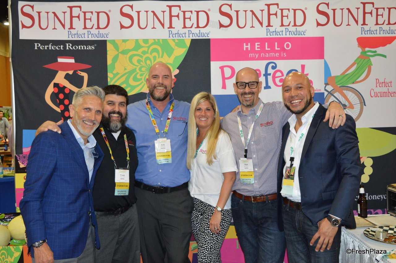 All smiles in the SunFed booth. From left to right Craig Slate, Frank Camera, Josh Acuña, Gretchen Kreidler Austin, Matt Mandel and Eduardo Herbst.