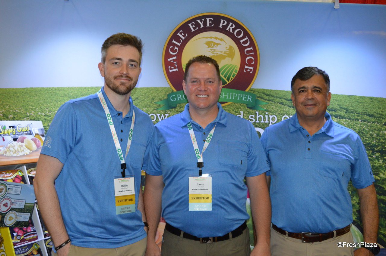 The team of Eagle Eye Produce has many convenient potato products on display. From left to right are Dallin Klingler, Lance Poole and Luis Parra.