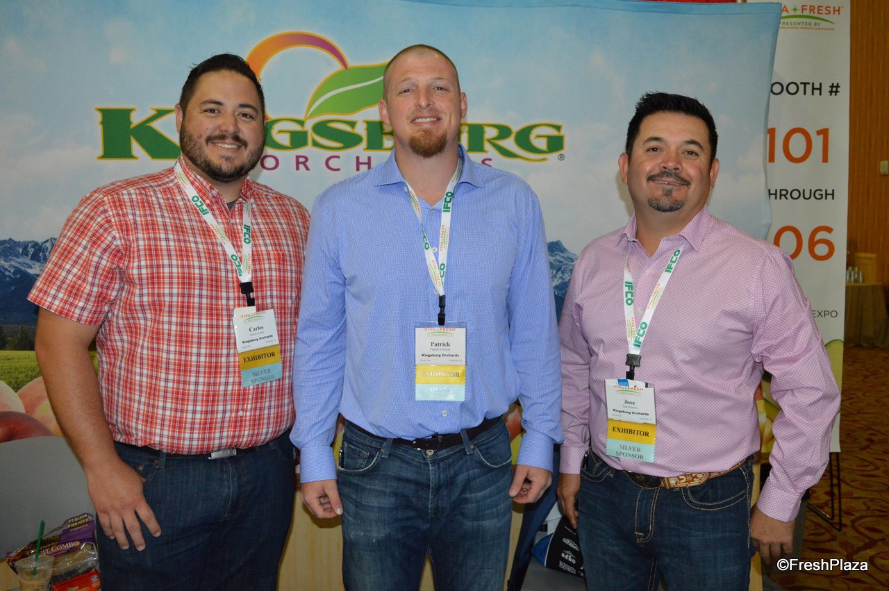 Carlos Acuña, Patrick Eubanks and José Herrera with Kingsburg Orchards.