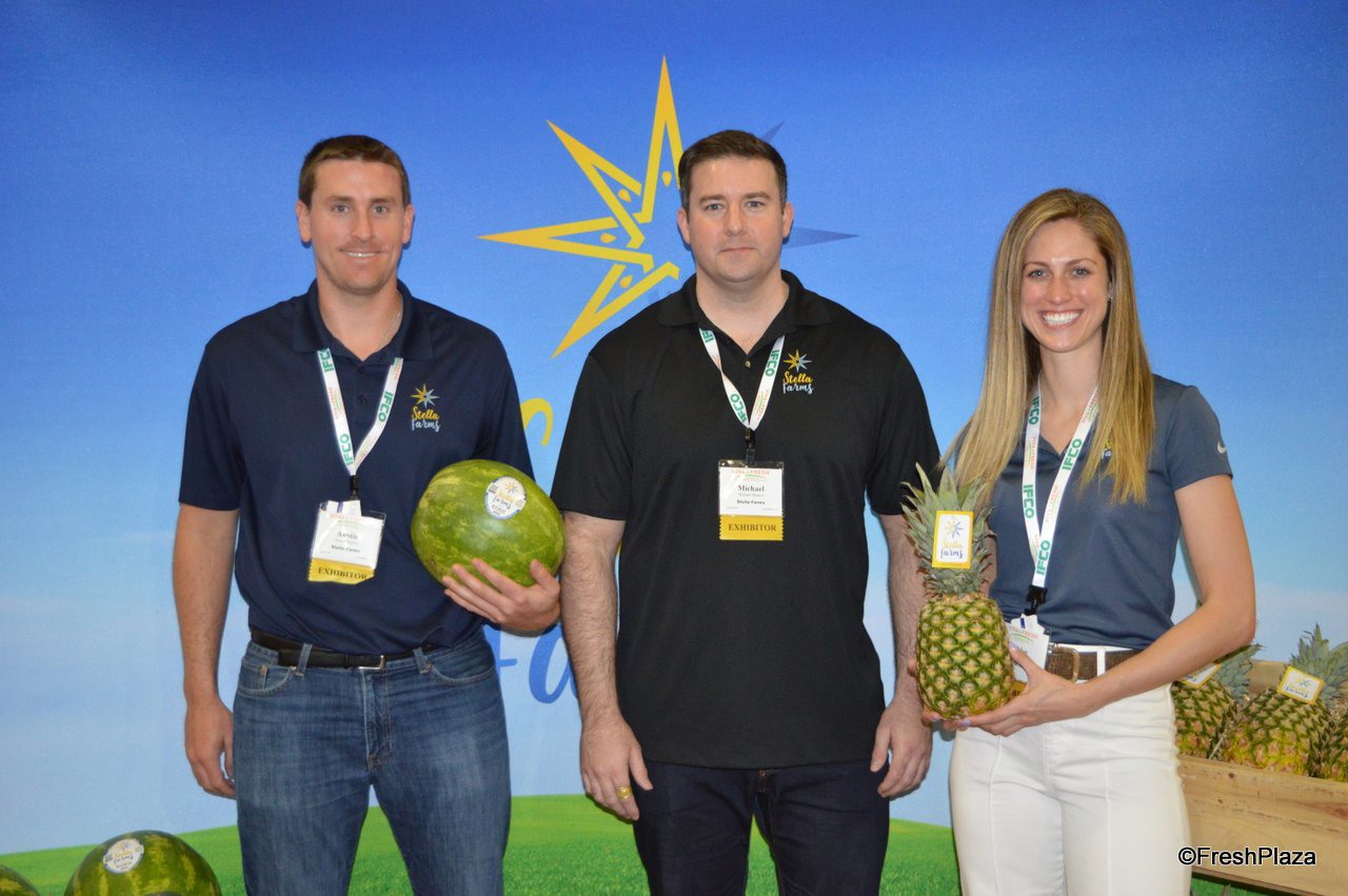 The team of Stella Farms proudly shows watermelon and pineapple. From left to right are Austin Mackey, Michael Martori and Chloe Albright.