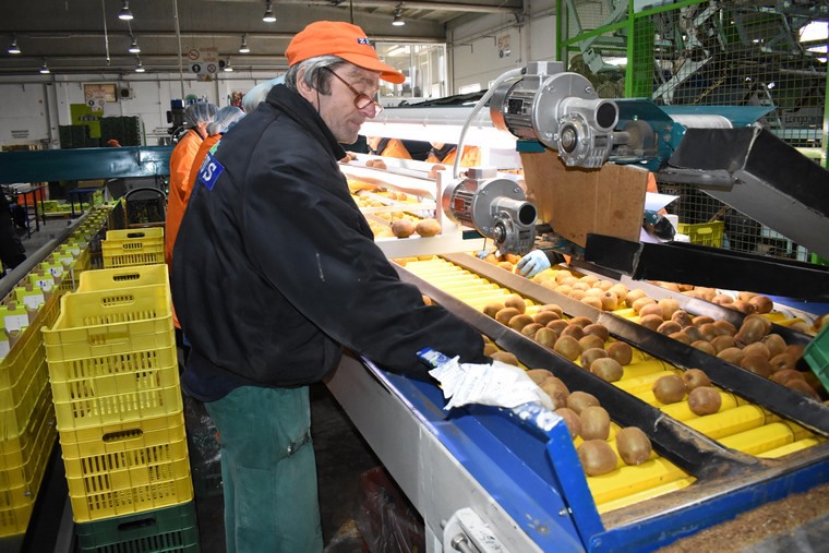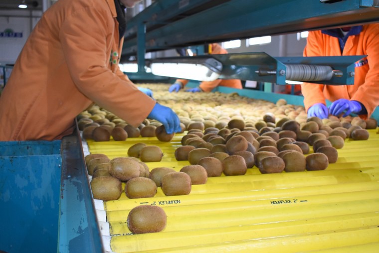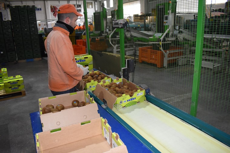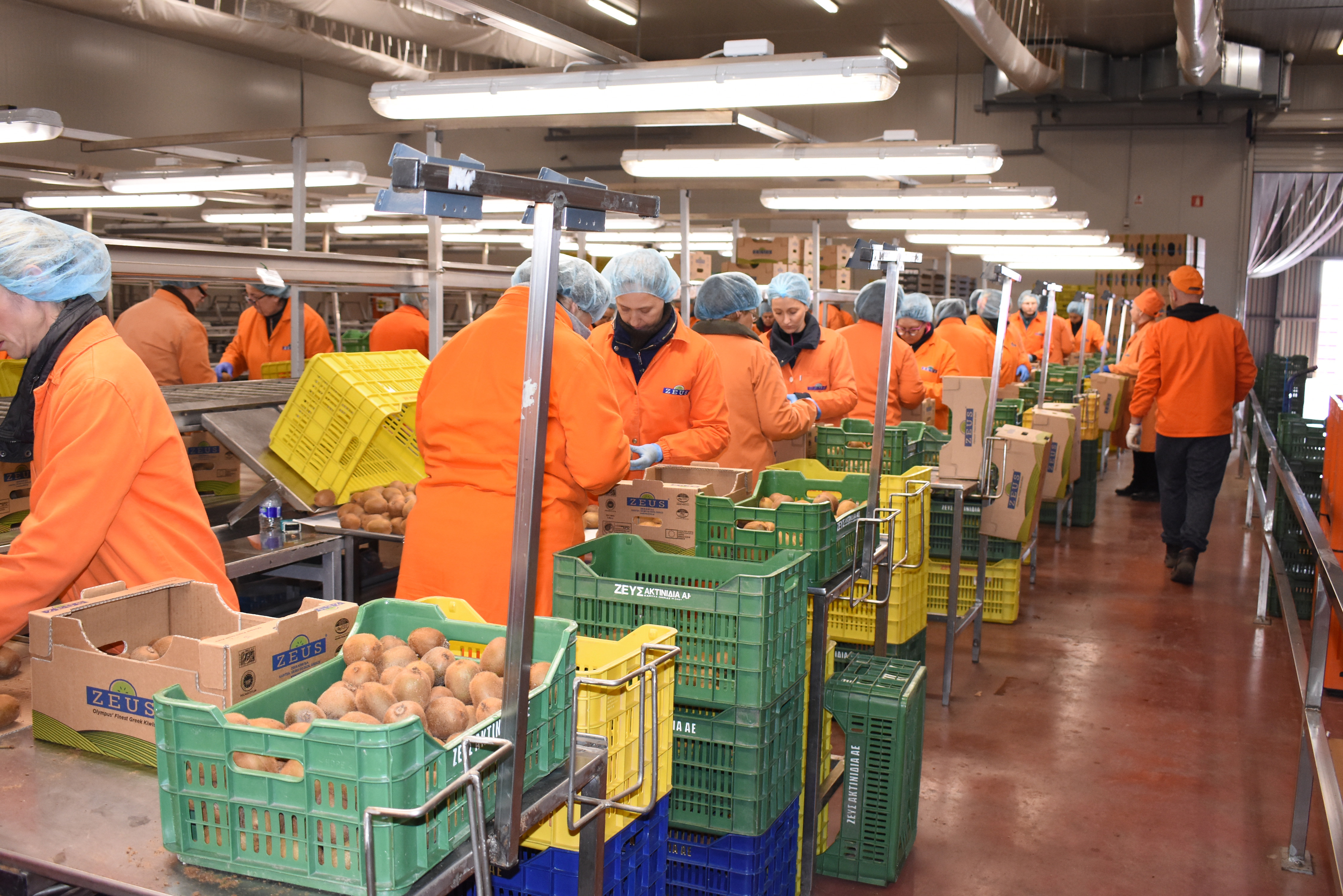 These kiwis are checked for any defects, and put into big cartons destined to the UK.