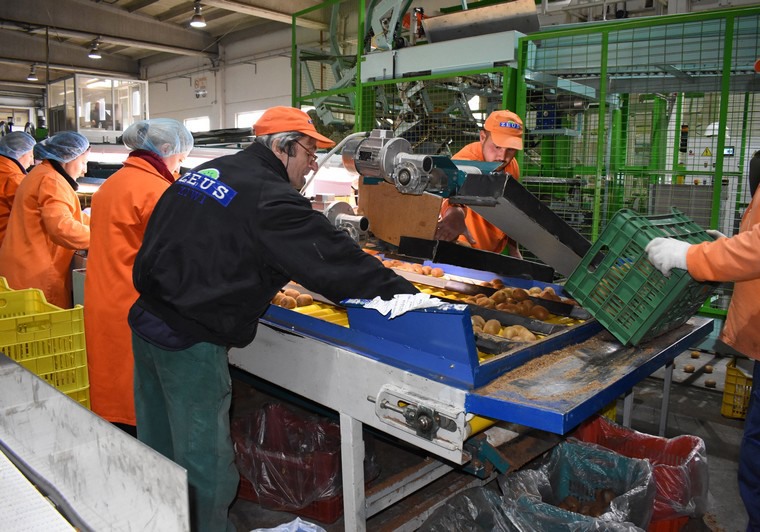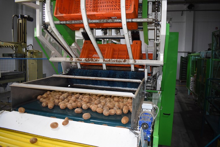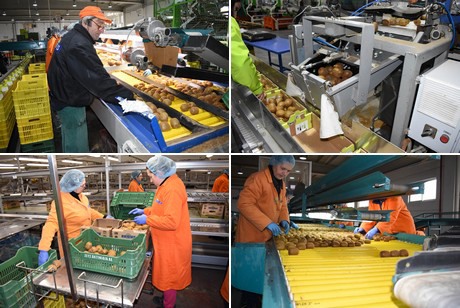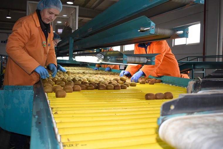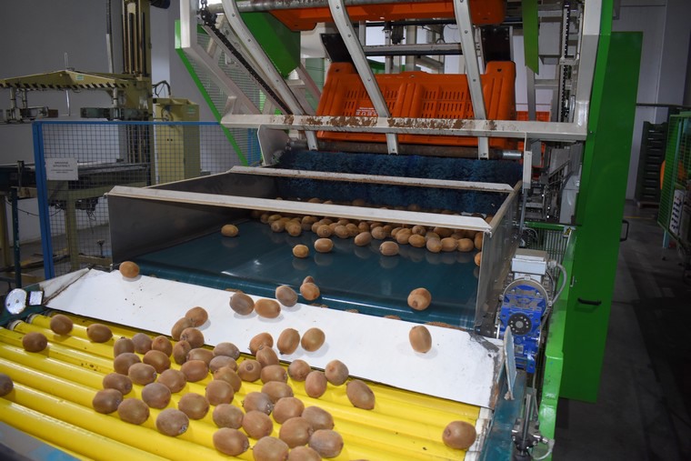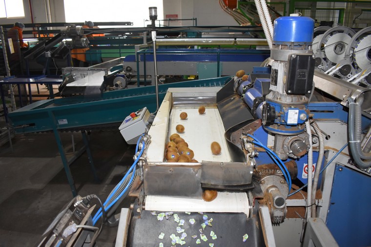 This is where the first sorting and selection processes take place. Kiwis with obvious defects are removed from the line.