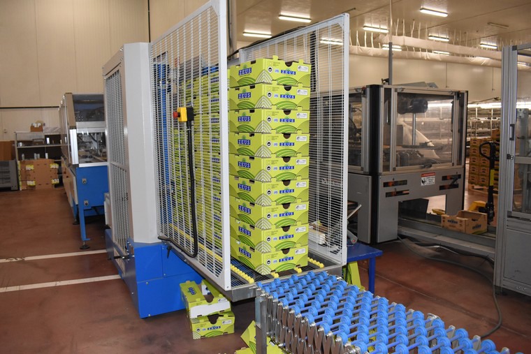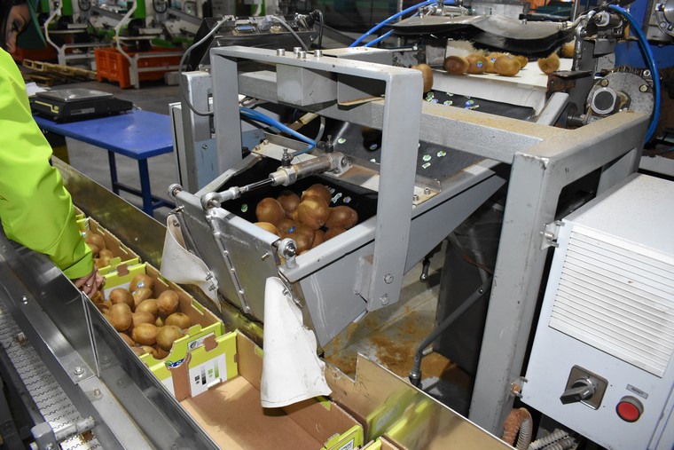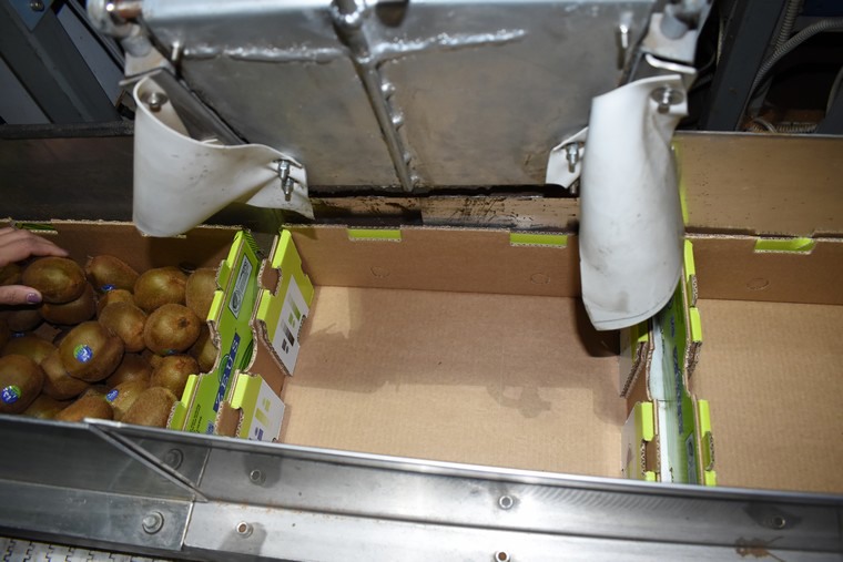 The machine waits until it can fill a full carton, after which the kiwis are dropped.