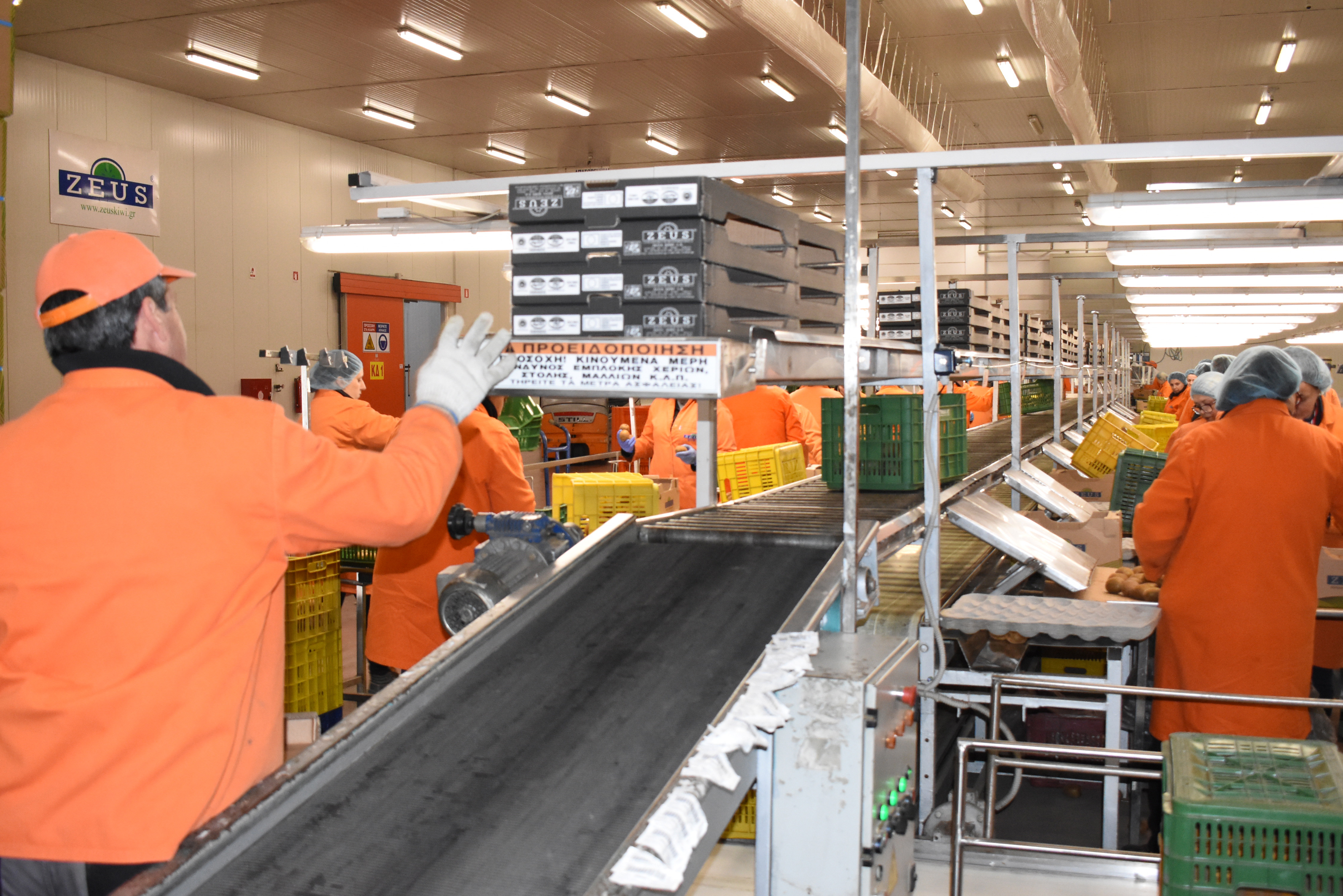At the end of the line, the kiwis are being put into cartons. The brown cartons indicate these kiwis are destined for the United Kingdom.