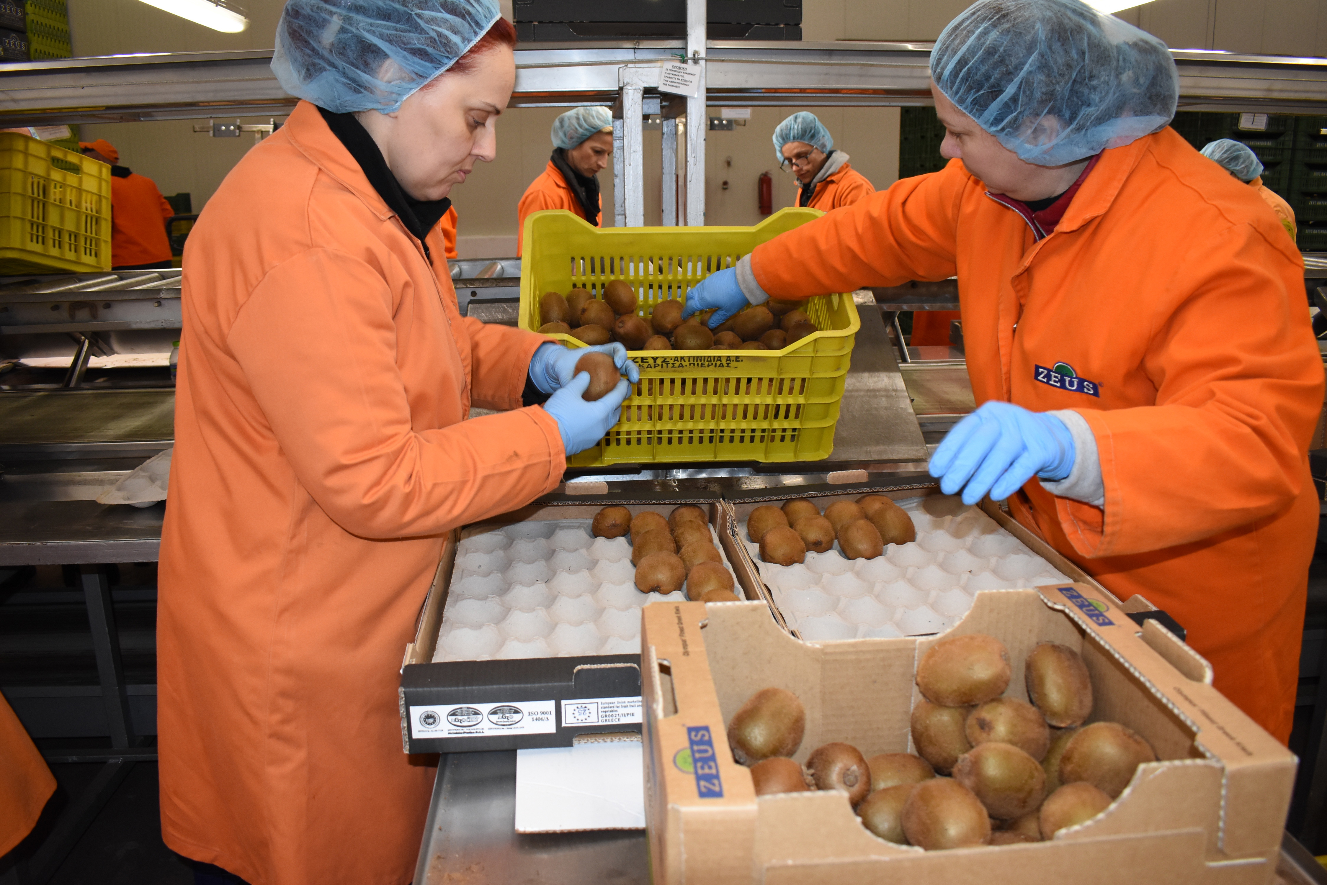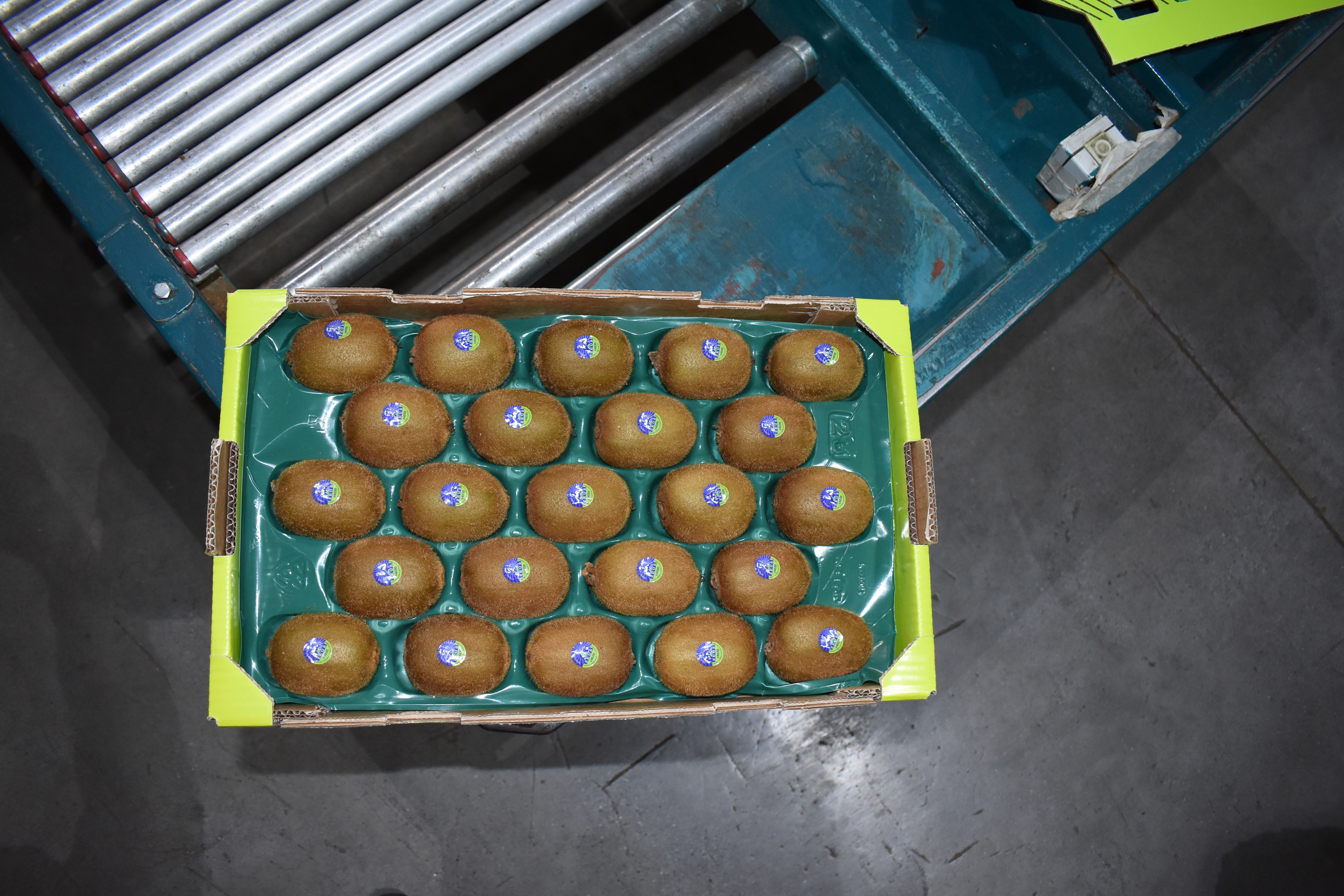 These kiwis are checked for quality issues and then placed into smaller cartons.