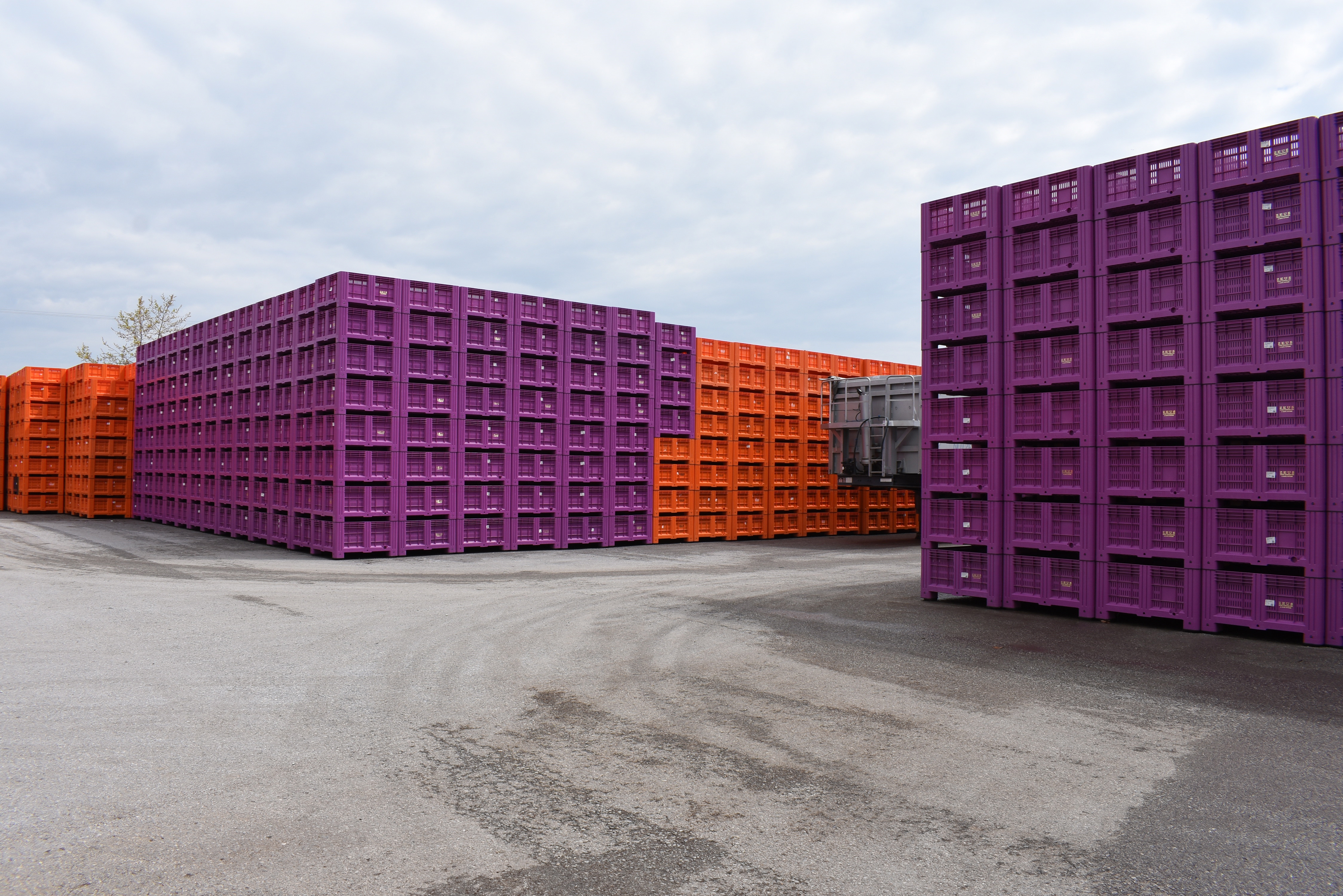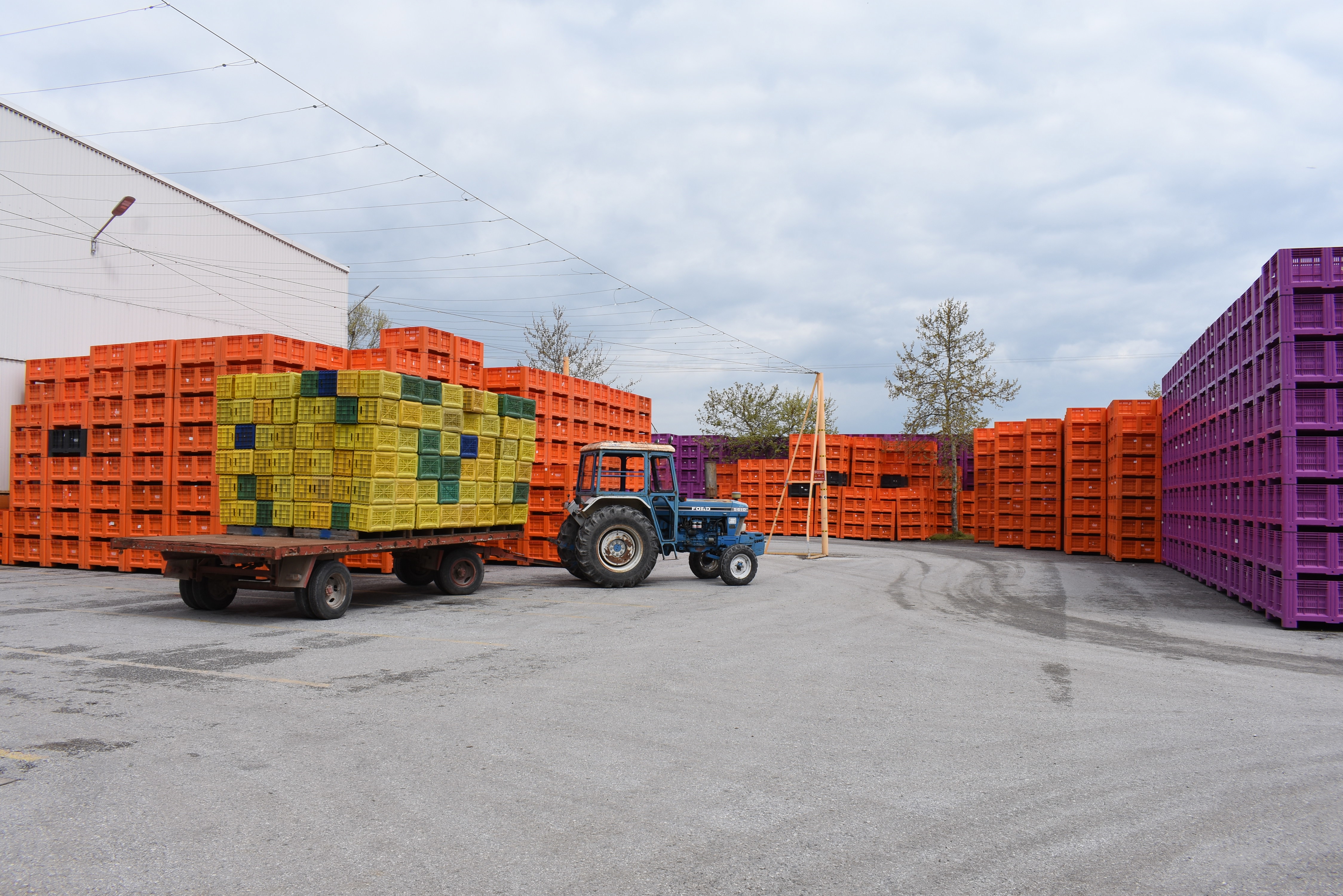 Just outside the packinghouse you can see loads of crates, which are washed and then reused.