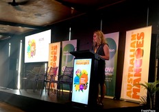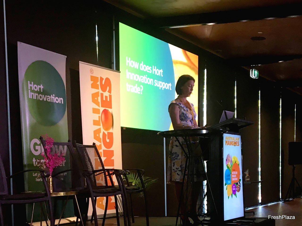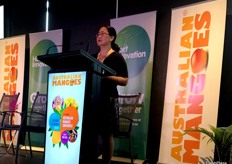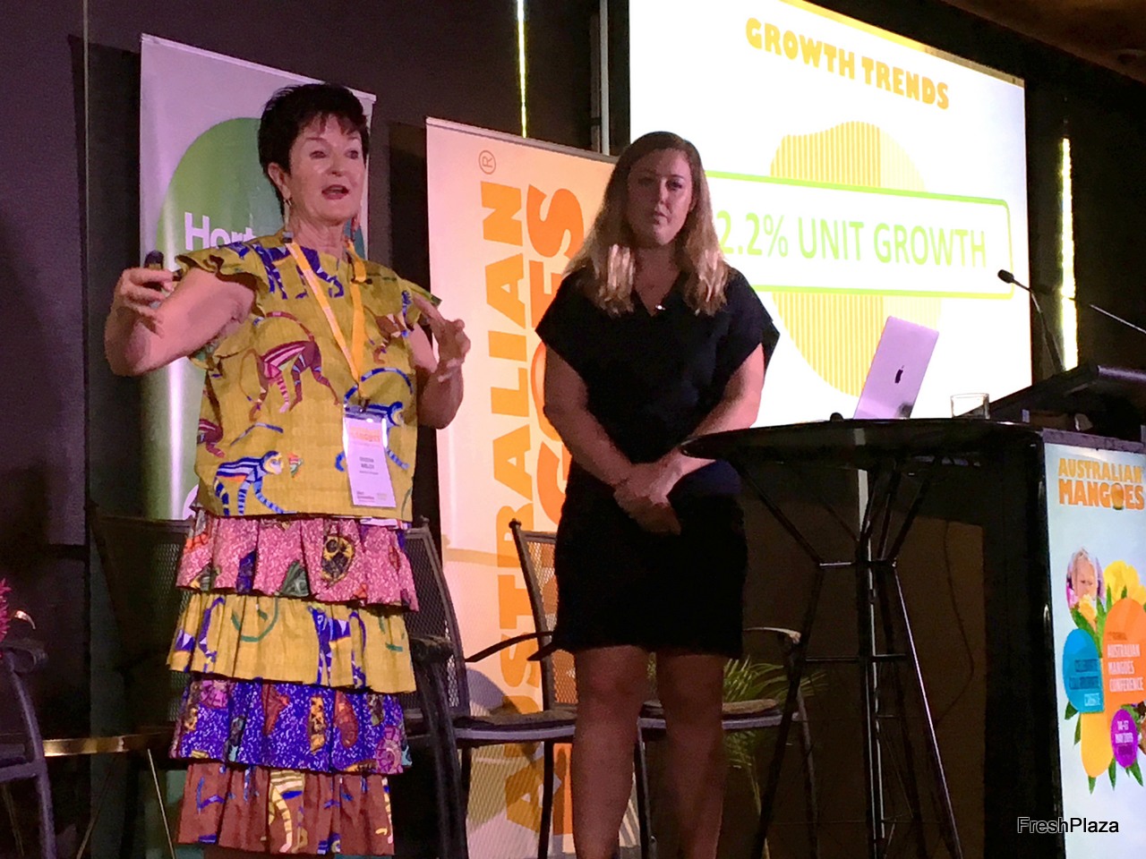 The AMIA's Treena Welch and Hort Innovation's Tate Connolly delivering the latest marketing statistics from the 2018-19 mango season.