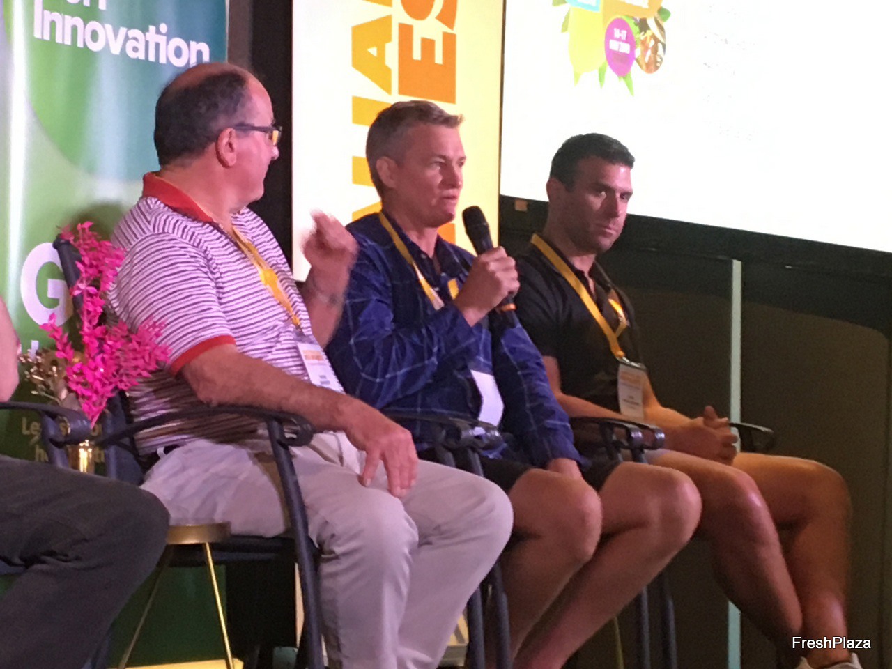 Ross Barker, Andrew Dalglish and Chris Brancatisano taking part in a panel discussion about the recent trends in the domestic mango market.