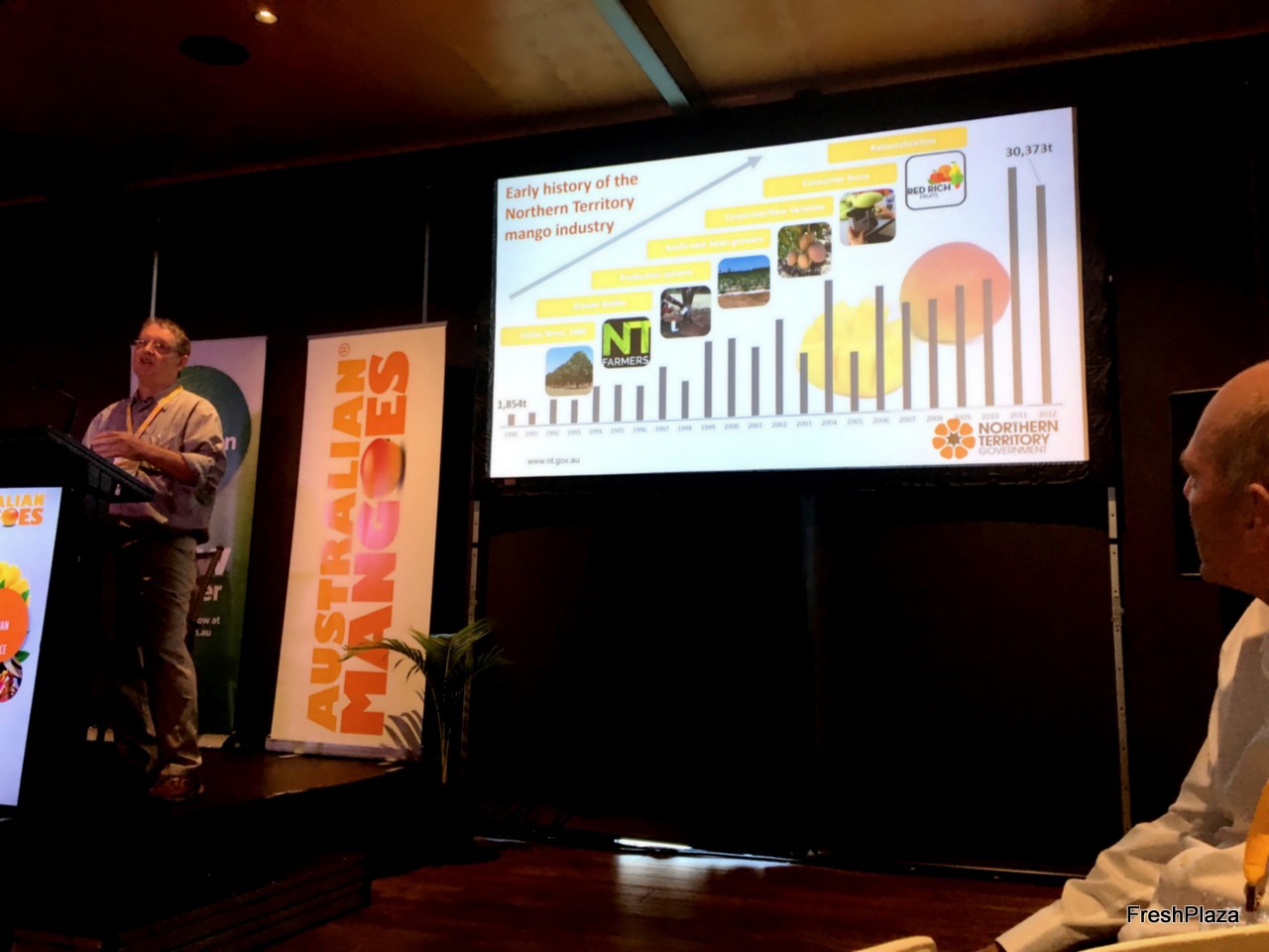 Dr Cameron McConchie from the Northern Territory Department of Primary Industries and Resources explaining advances in mango production in NT