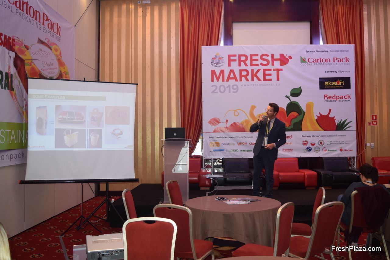Massimiliano Persico of Carton Pack giving a presentation on their packaging.