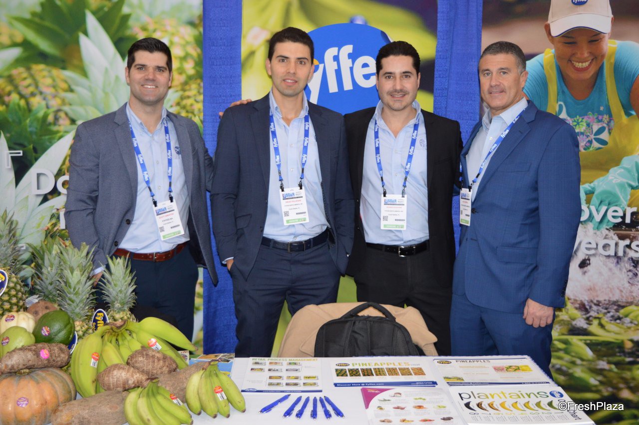 The Fyffes team has a collection of Tropicals and Exotics on display. From left to right: Scott DiMartini, Diego Villegas, Ricardo Echeverri and Jack Howell.