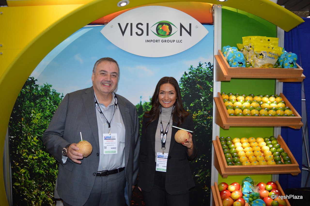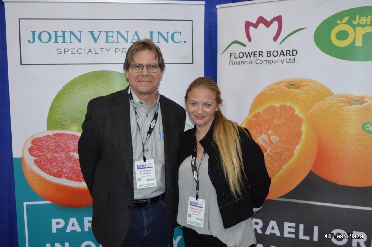 John Vena with John Vena, Inc. and Rima Kagan with Flower Board, who works with a citrus supplier from Israel. Israelian citrus is a significant import program for John Vena, Inc.