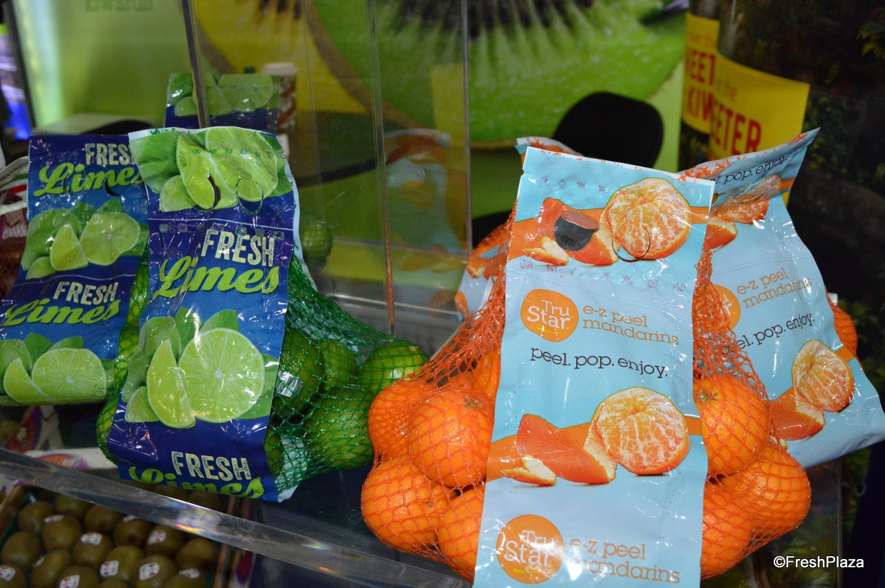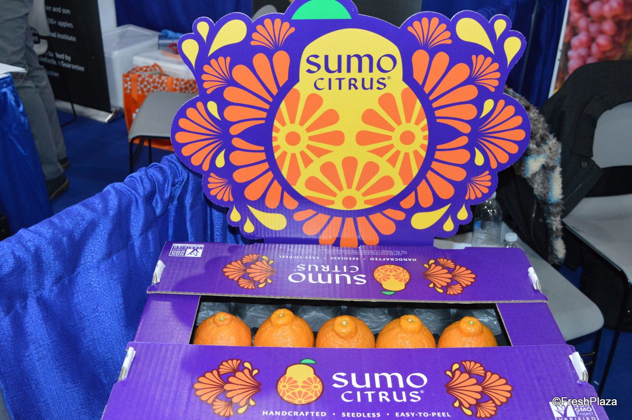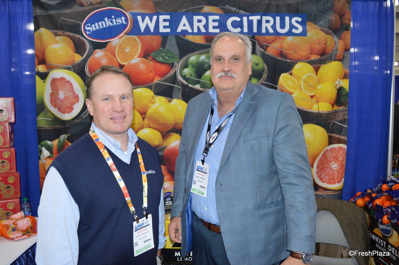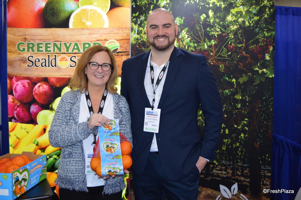 Kelly Dietz and Tony Pellegrino with Greenyard/Seald Sweet. Kelly proudly shows clementines imported from Morocco.