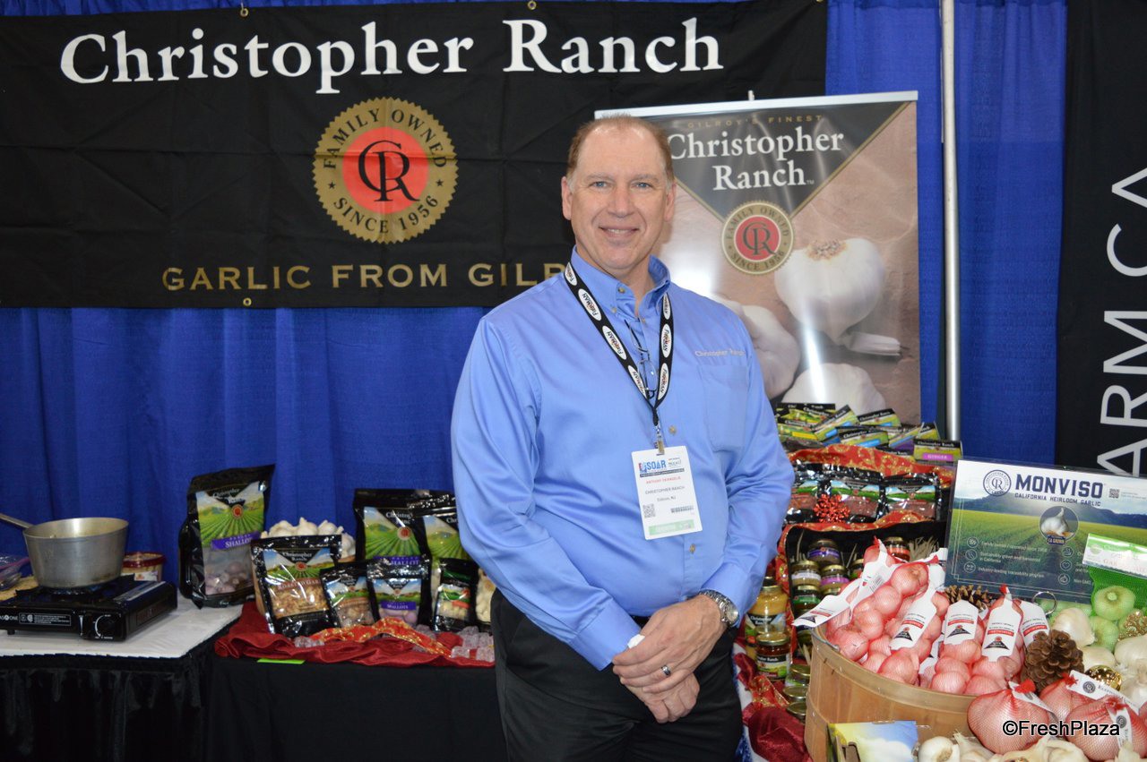Anthony DeAngelis with Christopher Ranch has many different garlic items on display.