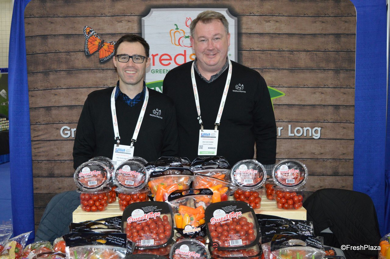 Kyle Moynahan and Harold Paivarinta with Red Sun Farms have their new Sweet Pops and Sweet Peps on display.