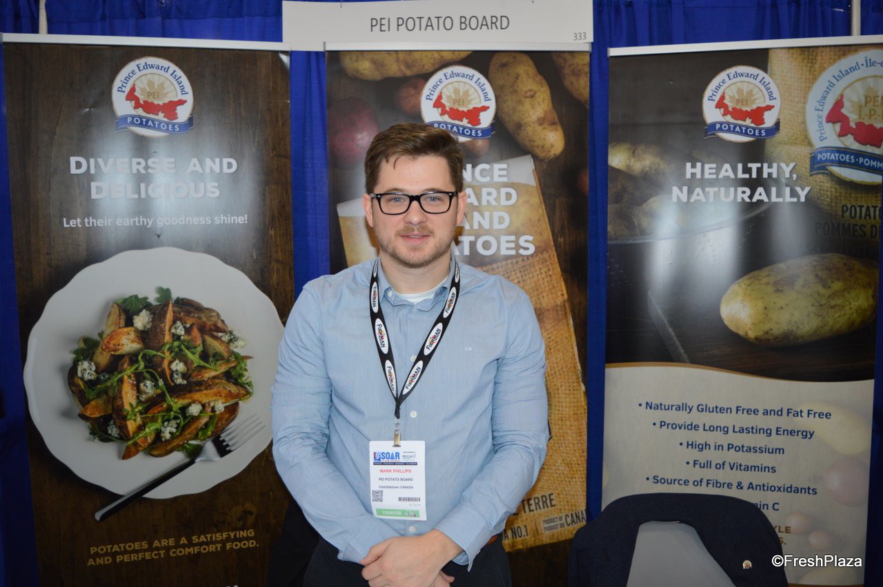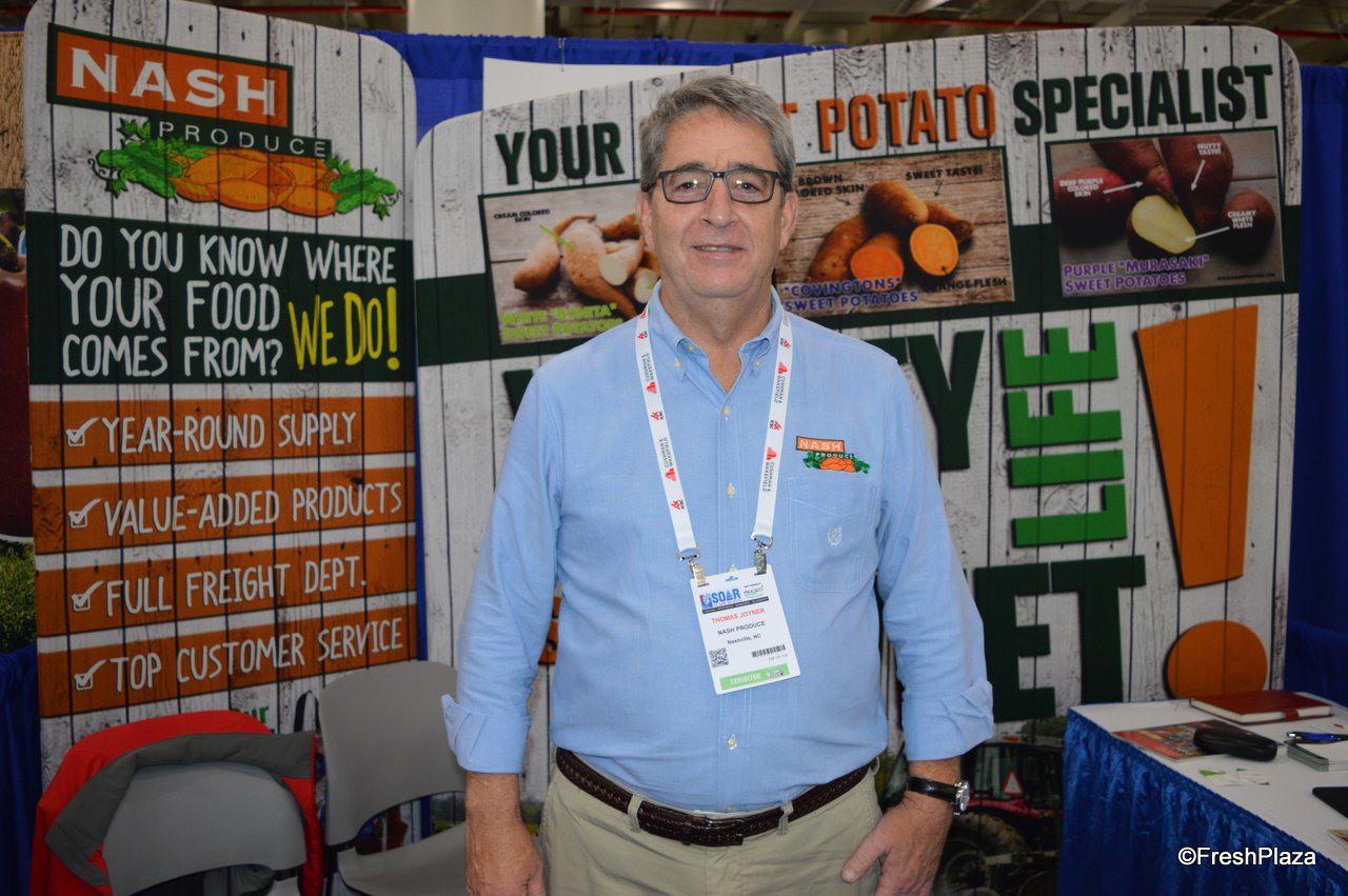 Thomas Joyner with Nash Produce promoting North Carolina sweet potatoes.