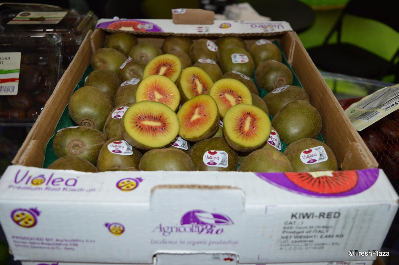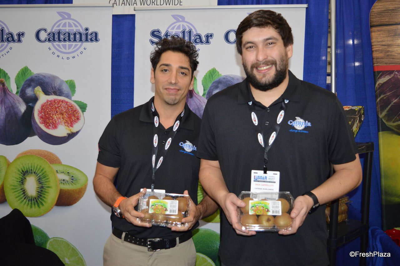 Showing California grown kiwifruit are Matt Catania and Nick Cappelluti with Catania Worldwide.