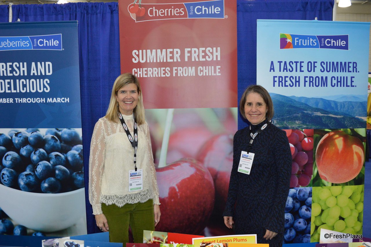 Karen Brux and Allison Myers with Fresh Fruits from Chile.