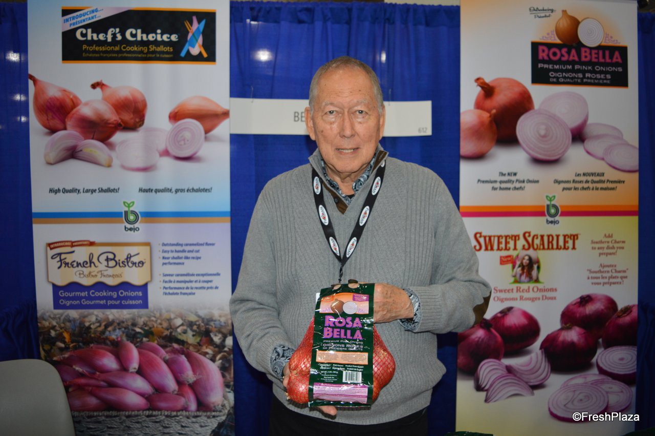 Michael Ryshouwer with Flavorful Brands proudly shows a mesh bag of the new Rosa Bella, premium pink onions. In Canada, they are distributed by Canadawide. The US distributor is L&M Companies.